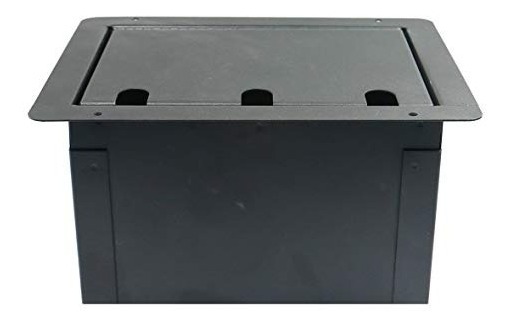 Resistente de calibre 14 de acero de construcción; La cubierta de la tapa con bisagras con ranuras para cables; Insertar sólida placa de metal se monta con tornillos; Placa de metal Insertar dimensiones son 8,25″ x 6″ caja resistente piso de metal con acceso con bisagras a las entradas capaz XLR 8 de soldadura y un duplex toma de CA con caja posterior. Buen acabado negro mate que sería perfecto para las iglesias, escuelas y teatros. Todos nuestros productos son de Estados Unidos SKU 30081826730
