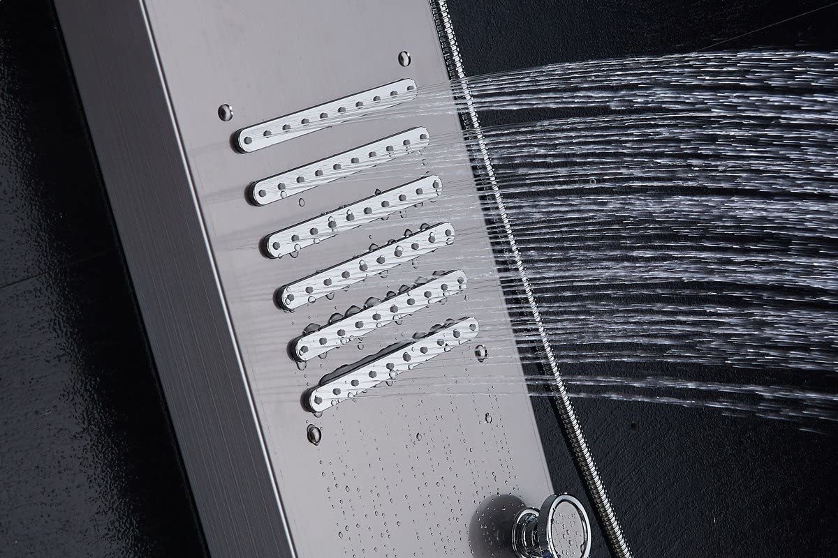 La torre de panel de ducha ELLOALLO está fabricada con acero inoxidable SUS304 de la más alta calidad y con un atractivo acabado de níquel cepillado a juego, este panel de ducha está diseñado para proporcionar solo las duchas más opulentas con sus funciones totalmente simultáneas y controles variables. Sumérgete en una experiencia de ducha realmente relajante y disfruta del estilo moderno de este panel de ducha bellamente diseñado.