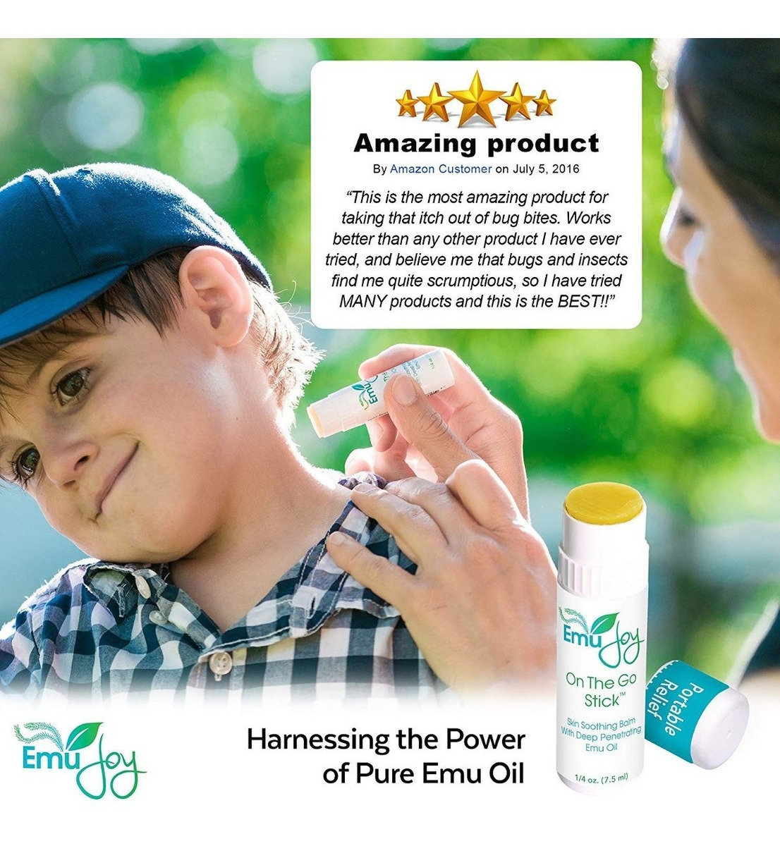 PARADA QUE PICA MUERDE de arruinar su diversión – tamaño torcedura palo práctico bolsillo es fácil de llevar para que siempre pueda estar preparado cuando las picaduras de insectos pasan (y siempre lo hacen!) Si usted o alguien que conoce es sensible o alérgico a las picaduras de mosquitos este convenientes mitigador picor será su nuevo hallazgo de verano preferida; SAFE y fácil para que los niños lleven y se dediquen – Es la cosa perfecta picadura de un insecto para llevar al campamento. Funciona para las mordeduras, golpes, hematomas y rasguños. Este todo el tratamiento natural es sólida como un bálsamo para los labios, por lo que no hay lío pegajosa, sin olor ni picar al momento de la aplicación, y es completamente natural y seguro para todas las edades .; Más usos – golpes, hematomas, pequeños cortes, arañazos, labios agrietados, quemaduras solares, fogata quemaduras leves, piel seca, llagas en la máquina de CPAP nariz, la hiedra venenosa y el roble, el eccema y otras picaduras como nigua, pulgas, ácaros araña, mosquito, insecto de la cama , no-ver-um y volar caballo; PARADAS ITCH y el dolor rápidamente gracias al poder de penetración profunda del aceite de emú. El aceite de emú se absorbe en la piel más rápido y mejor que cualquier otro aceite porque es muy similar en composición a nuestro propio aceite de la piel. Esto hace que el aceite base perfecta para llevar a la otra contra la picazón y la piel calmante ingredientes con que para el efecto máximo; NO salir de casa sin TI – Tenga usted mismo, su familia, sus hijos y sus amigos pican libre con la On the Go Stick. Disponible en un ahorro de dinero 3-PACK para que siempre tenga uno a mano. Mantenerlos en su mochila, bolso, botiquín de primeros auxilios, caja, bolsa de sillín, botiquín y kit de viaje de abordar. Todos nuestros productos son de Estados Unidos SKU 23111815909