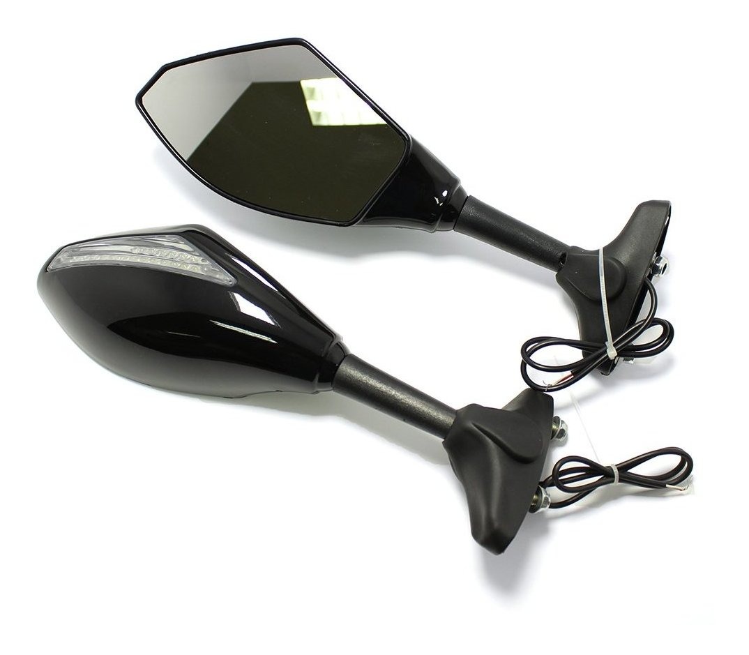 Material: ABS de alta calidad de carcasa con acabado satinado Negro .; ángulo del espejo ajustable, arriba y abajo, izquierda y derecha .; LED de la lente: Claro y Humo están disponibles; El paquete incluye: 1 Establece (izquierdo y derecho) intermitentes LED Flecha espejos laterales estilo .; Montaje: Ajuste para la mayoría de carreras de motos, el detalle por favor ver más abajo la descripción. Color: negro brillante + Claro Len