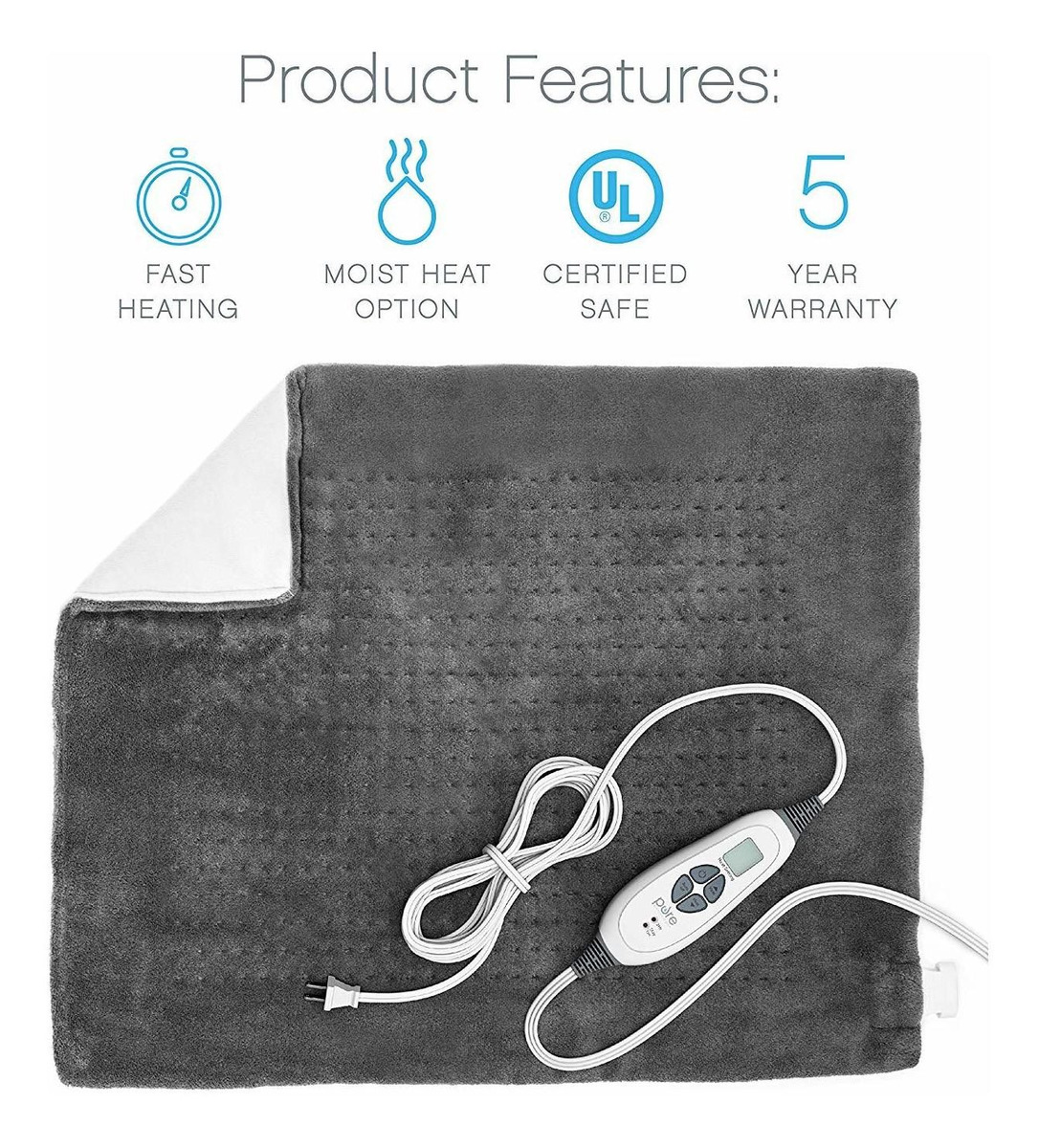 EXTRA-WIDE 20 X 24 del cojín de calefacción: Proporciona la máxima cobertura de la espalda baja, hombros, piernas y otros grupos de músculos grandes; Super suave Microplush para el máximo confort: Suave, microplush lavable a máquina se siente suave y reconfortante sobre la piel desnuda; HEATS en segundos: Se calienta rápidamente para proporcionar un alivio rápido y temporal del dolor de cansancio, dolor, o dolores musculares; USO húmedo o seco: Húmedo opción de terapia de calor proporciona una penetración más profunda para el alivio muscular más eficaz; Lo que obtienes: una almohadilla eléctrica con el controlador, bolsa de almacenamiento, manual de usuario, garantía de 5 años líder en la industria, la atención al cliente que cuida 7 días a la semana, y la tranquilidad de que proviene de una marca de confianza con millones de clientes en todo el mundo. Todos nuestros productos estan en inglés SKU 5022007533
