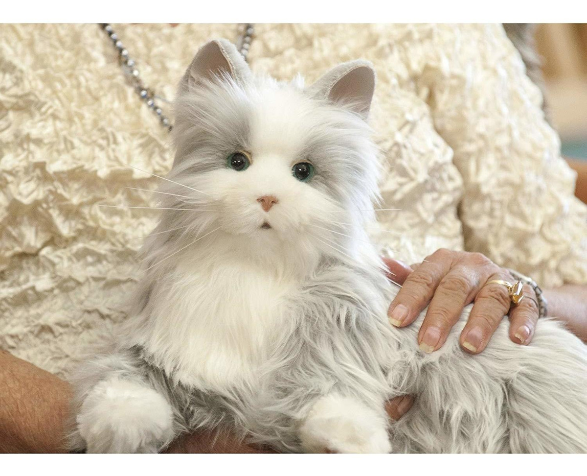 Y blandito suaves en Mascota con pelo Inspirado por Razas verdadera felina; El compañero de mascotas y Guía de Cuidado; incluídas X4 1,5 V C Pilas alcalinas; Incorpora la Tecnología vibrapurr párrafo Purrs Que Sonido y Sentir Como ronroneo real; Los Movimientos Que imitan real de la ONU gato; sonidos auténtico gato Color: Plata con blanco mitones