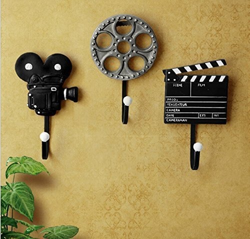 New design, high quality, hand-made paintings,perfect for anyone who needs more hanging space.; A set of 3 metal wall hooks, each with a different movie-themed design: a movie reel, a camera, and a clapperboard.; Size: about 6.3inch3.5inch (16cm9cm). Creative Retro Style Design,made of high quality resin.; Adds a touch of sophistication and elegance to any office or home.; Makes a great gift for anyone who likes distressed looking rustic decor in a jewelry holder – Valentines Day, Christmas, Birthday. Los robustos, ganchos metálicos de almacenamiento de pelotas cubiertas proporcionan un lugar para que usted mantenga artículos como abrigos, bufandas, toallas, bolsos y almacenados y fuera de la manera que cuelga.