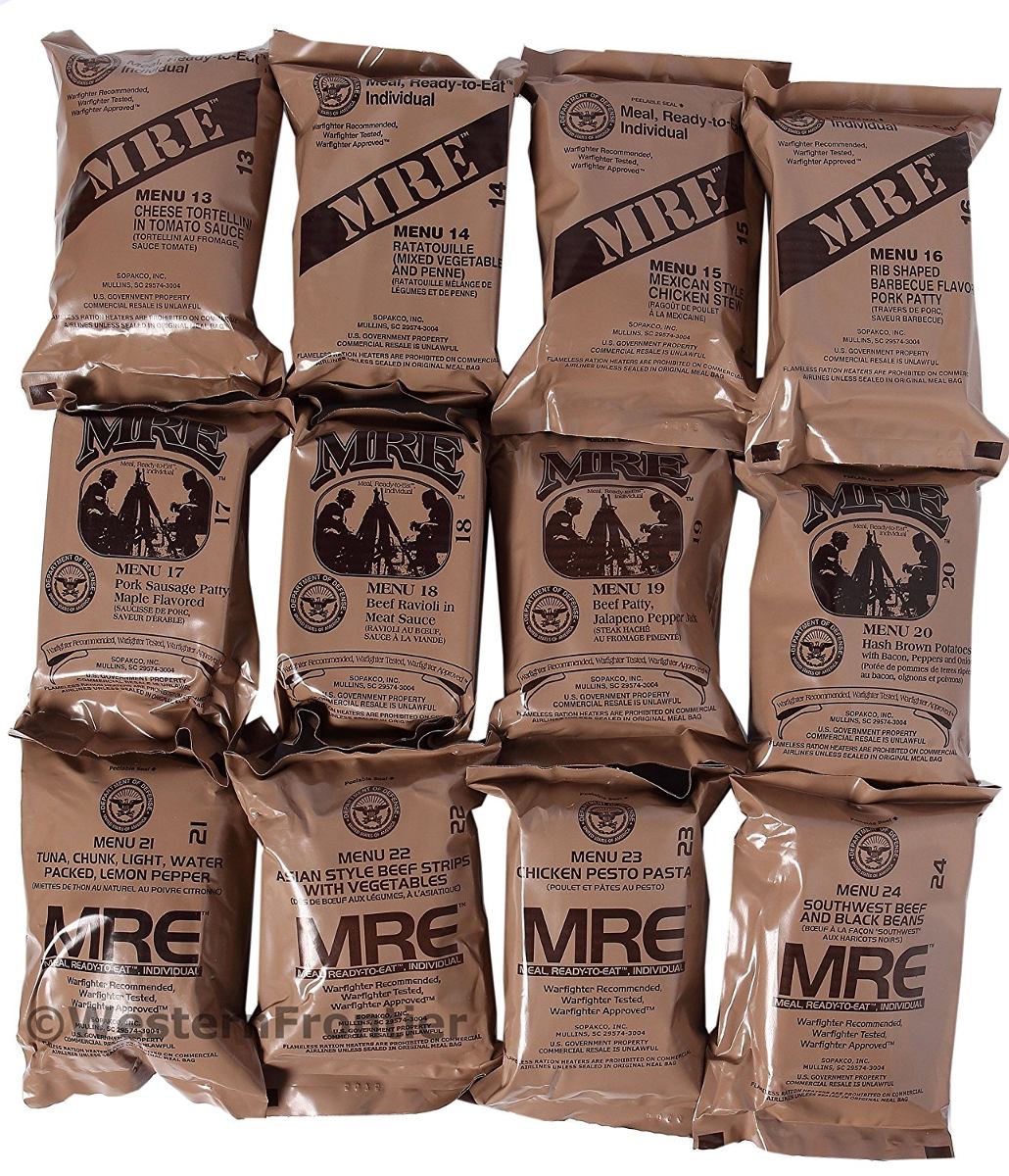 Caja de 12 comidas. 12 comidas con fecha de visita 2018, 2015 Fecha paquete. Hecho para mantener las tropas estadounidenses militares en combate, estos son, de lejos los mejores comidas preparadas disponibles en cualquier lugar. Las comidas incluyen una variedad de cocina asiática, mexicana, italiana, tradicional y vegetariana sabrosa. Las comidas también incluyen una gran variedad de aperitivos, postres, café, capuchino, batidos de leche, polvos de reposición de electrolitos, o chocolate caliente. MRE militares incluyen un paquete de accesorios con potenciadoras del sabor condimentos, fósforos, papel higiénico y otros elementos esenciales de supervivencia. VIDA ÚTIL: MRE no tienen una fecha de caducidad. Tienen una fecha de inspección y una fecha de empaque. La fecha de visita es de tres años después de la fecha de empaque, y la fecha de la inspección es la fecha en que el militar inspecciona el caso durante el almacenamiento a largo plazo para verificar el contenido es apto para el consumo o almacenamiento prolongado. Una vez que Red etiqueta Indicador de temperatura (TTI) se encuentra en la parte superior de la caja indica la condición de contenido. Un TTI oscuro indica los contenidos se están acercando a la expiración, y un TTI negro significa caducado. Los fabricantes sugieren contenidos de comidas son buenas para aproximadamente 5 o más años a partir de la fecha de envase si se conservan a temperatura ambiente. Comidas almacenados en temperaturas más frías permanecen frescos durante más tiempo. MRE militares son ideales para las siguientes: senderismo, pesca, camping, caza, Navegación en barco, Kits de supervivencia, Bug-Out-Bags, Prepper de Piles, de operaciones tácticas, los servicios de emergencia, y más. Nota: El producto fabricado por Sopako, Wornick o Ameriqual. Contenidos varían de un caso a otro y lo que se muestra en las fotos. Los fabricantes suelen sustituir productos y cambiar la numeración de las comidas o platos. No hay garantías sobre los contenidos envasados. No todas las comidas se incluyen calentadores de raciones sin llama. Periódicamente, no Mil Spec dulces será empaquetada que no tiene la misma vida útil que el contenido especificaciones militares. Por favor, inspeccionar y leer todas las fechas de caducidad de los productos de confitería no MILSPEC. Auténtica guerra de EE.UU. Raciones de combate – 12 comidas por Caja con 2018 fecha de visita, 2015 Paquete Fecha .; Embarcaciones la velocidad del rayo directamente desde Amazon. Elegibles para el envío libre de 2 días a través de Amazon Premium. Obtener su caso a tiempo para el viaje de campamento de fin de semana, la aventura de caza, excursión de pesca, o los preparativos de emergencia. Aproximadamente 1.250 calorías por comida y 15.000 calorías por caso .; Los platos principales incluyen asiática, mexicana, italiana, tradicional y cocina vegetariana. Junto con una entrada, cada comida ofrece una variedad de platos secundarios, polvos de bebidas, y postres. Disfrutar de un café, capuchino, batidos de leche, chocolate caliente, dulces y otros sabrosos lados .; Sólo MRE militares incluyen un paquete de accesorios con potenciadoras del sabor condimentos, fósforos, papel higiénico, goma, y ¿¿cubiertos. La mayoría de las comidas incluyen un calentador sin llama ración. Tenga en cuenta que los entrantes y los contenidos de la comida pueden variar de lo que se muestra en las fotos .; MRE no son sólo para Preppers incondicionales; usar para cualquier situación donde se necesita una comida caliente rápido en un entorno remoto. Son ideales para camping, senderismo, pesca, navegación, Kits de supervivencia, Bug-fuera bolsas, servicios de emergencia y operaciones tácticas. Adicional Filtrado Todos nuestros productos estan en inglés SKU 22091725191