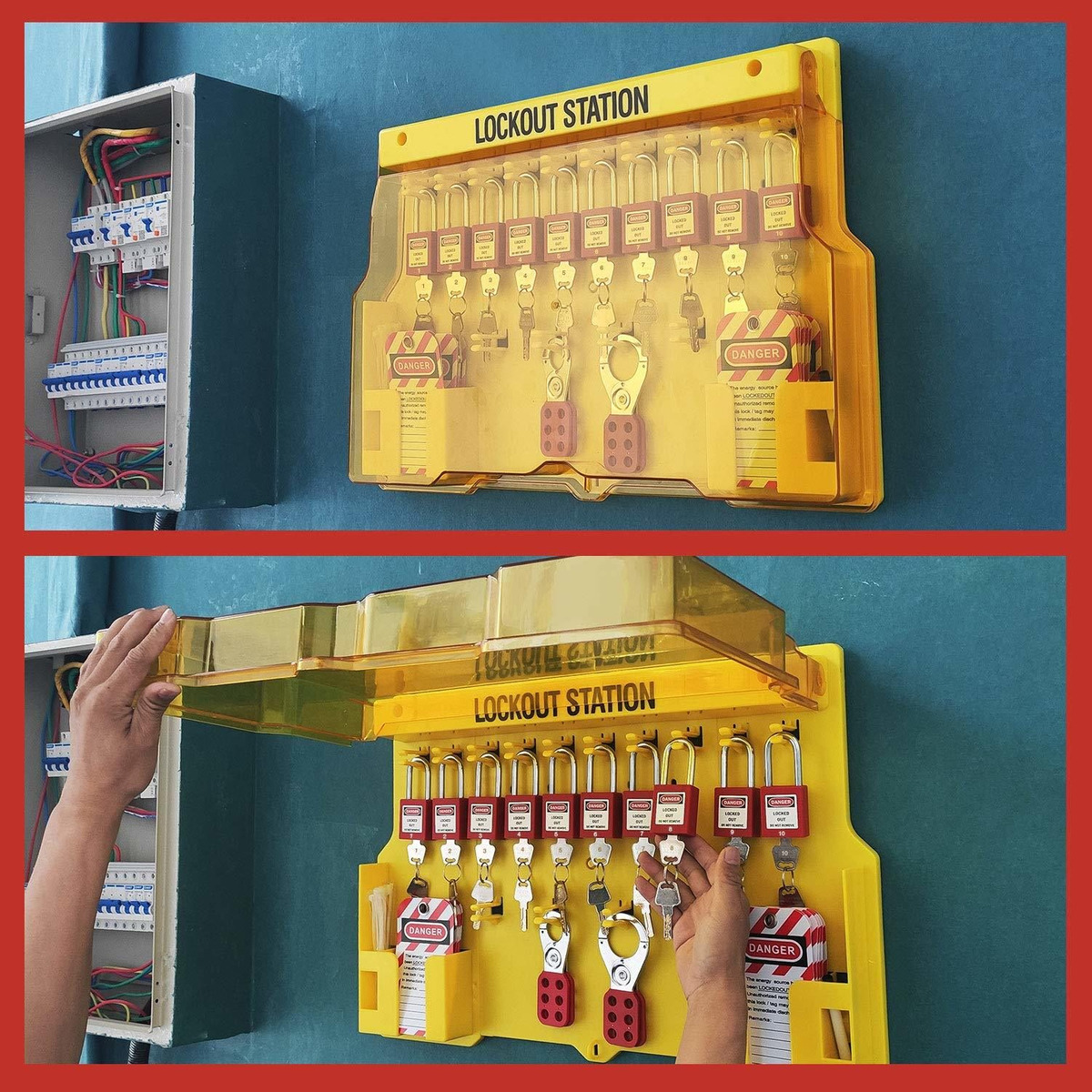 1. La estación de Etiquetas de bloqueo INCLUYE 10 cerraduras de Etiquetas con llave diferente con Numero (1 – 10) y 24 Etiquetas de bloqueo y 2 cerrojos de bloqueo y 20 bridas de nailon y 1 bolígrafo .; 2. Utilizado para Aplicaciones de bloqueo de grupo de Como parte de las Naciones Unidas Programa de Seguridad Integral de Etiquetas de bloqueo compatible con OSHA .; 3. Estación de Etiquetado con cubierta transparente, hecha de plástico de ingeniería, amarillo de alta visibilidad Para Una Fácil identification .; 4. Espacio de Almacenamiento Suficiente, 10 clips para colgar candados de Seguridad, 4 clips para colgar cierres de bloqueo y 2 contenedores para Etiquetas de Seguridad .; 5. Ordena con confianza. OFRECEMOS Una Garantía de por vida. Si Hay any problema con el producto en any Momento, please Pongase en Contacto con Nosotros directly y le responderemos Dentro de las 24 horas. Somos Una Empresa con profunda Comprensión en el Campo industrial. Propia Fábrica de Producción para dar hoy toda needs Personalizadas de Cerraduras Y Equipos de Seguridad.