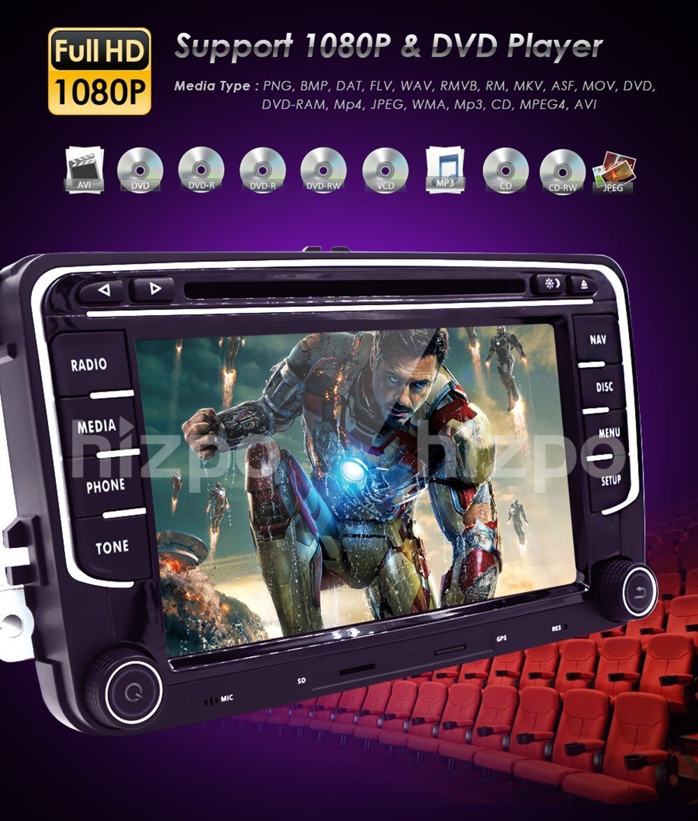 Estéreo de HD de 7 pulgadas de doble DIN coche DVD GPS Navi para la pantalla VW Golf Passat del polo Tiguan Jetta EOS + US Mapa + cámara capacitiva Memoria externa: hasta tarjeta de 64GB / TF