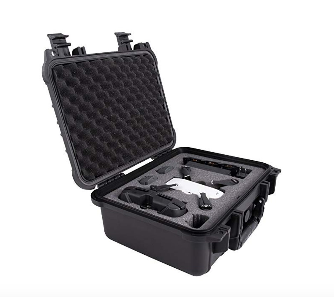El interior de la caja tiene recortes separados que están diseñados para sujetar cómodamente el cuerpo del dron con los topes retirados, el controlador y un recorte rectangular para alojar el centro de carga, los adaptadores y más. El asa de transporte integrada y los orificios dobles para candados también lo hacen seguro y conveniente para vacacionar, viajar a través del aeropuerto o simplemente para uso diario. Este estuche es compacto y mide 13.5 «x 11.5» x 5.5 «en dimensiones exteriores y mantiene su Drone y sus accesorios organizados de forma segura en un solo lugar.