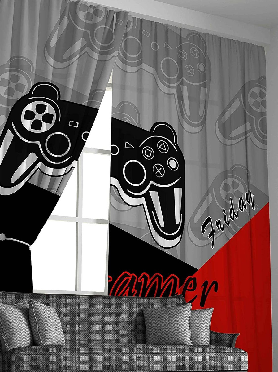 100% poliéster; DETALLES DEL PRODUCTO: EL PAQUETE INCLUYE DOS PANELES DE CORTINA PARA GAMER. Medidas: 38 pulgadas de ancho x 45 pulgadas de largo.; DISEÑO GENIAL: CORTINAS DE DORMORIO PARA NIÑOS CON TEMÁTICA DE JUEGOS. Regalos Geniales para niños y adolescentes. Elegante GamePad Decoración del Hogar Anima Tu Dormitorio O Sala de Estar.; Ojales: CADA PANEL DE CORTINA TIENE 6 OJALES DE PLÁSTICO EN LA PARTE SUPERIOR. El Diámetro Interior de CADA OJAL ES DE 1.8 IN. FÁCILO DE COLGAR Y DESLIZAR SUAVEMENTE.; AISLAMIENTO TÉRMICO: NUESTRAS CORTINAS AÍSLAN DEL CALOR DEL VERÁNO Y DEL FÍO DEL INVIERNO PARA EQUILIBRAR LA TEMPERATURA DE LA HABITACION. Reduce el exterior El Ruido, protege Los Muebles de Daños Por El Sol.; Cuidado Fácil: Lavable A Máquina En Ciclo Suave Y Agua Fría, No Usar Lejía. PLANCHADO RÁPIDO O LIMPIEZA A VAPOR CUANDO SEA NECESARIO. Color: negro rojo gris | TAMAÑO: 38 x 45