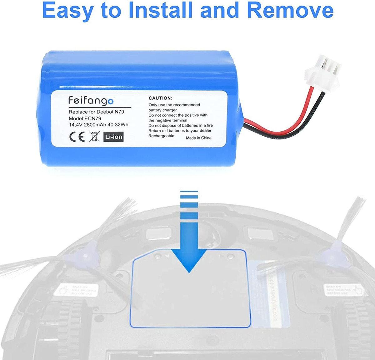 Feifango 2800mAh Li-ion batería de repuesto recargable proporciona 100 a 180 minutos de duración cuando está completamente cargada. Ayuda a tu robot a limpiar toda la casa fácilmente.