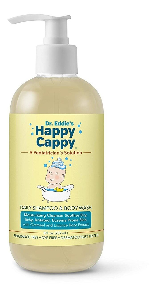 Feliz Cappy champú medicado del Dr. Eddie y gel de baño, conocida como La solución de un pediatra, peleas descamación, enrojecimiento, picor, descamación y la irritación en el cuero cabelludo y la piel de los niños de todas las edades. Estos síntomas molestos se conocen como la caspa y la dermatitis seborreica. 1 en 3 niños menores de 5 se ven afectados por esta condición .; Mucha gente se refiere a la dermatitis seborreica como costra láctea. Los pediatras recomiendan regularmente champús adulto caspa para esta condición, ya que contienen un ingrediente activo para controlar la dermatitis seborreica y la caspa. Hasta ahora no había champú dermatitis seborreica y gel no para niños .; Feliz Cappy es el primer champú y gel de baño OTC (over the counter) hecha específicamente para niños de todas las edades con el ingrediente activo, la piritiona de zinc, que se ha demostrado seguro y eficaz para muchas décadas para el alivio de la caspa y la dermatitis seborreica. También contiene el ingrediente natural extracto de raíz de regaliz para ayudar a calmar el enrojecimiento detrás de las orejas, debajo de las axilas y en los pliegues del cuello .; Libre de irritantes comunes de la piel como fragancia, colorante, alcohol, ftalatos, y conservantes conocidos como parabenos. Ofrece una rica espuma, evitando sulfatos agresivos como SLS o SLES. Cumple con PEDIATRIC DERMATÓLOGO; Cumple con las recomendaciones PEDIATRIC dermatólogo para ECZEMA por: estar libres de ingredientes de formación de espuma duras, siendo hipoalergénico, siendo libre de fragancia, y por tener un pH bajo para que coincida con el bajo pH de la piel normal que conserva la función de barrera de la piel. Cuidar de la dermatitis seborreica o la de su hijo con nuestra irritante libre de champú medicado y Cuerpo. En los días que no está utilizando el champú de lucha escamas utilice nuestro diario Champú y Gel de baño para calmar normal o seca, eczema irrita la piel propensa. Todos nuestros productos estan en inglés SKU 13082024978
