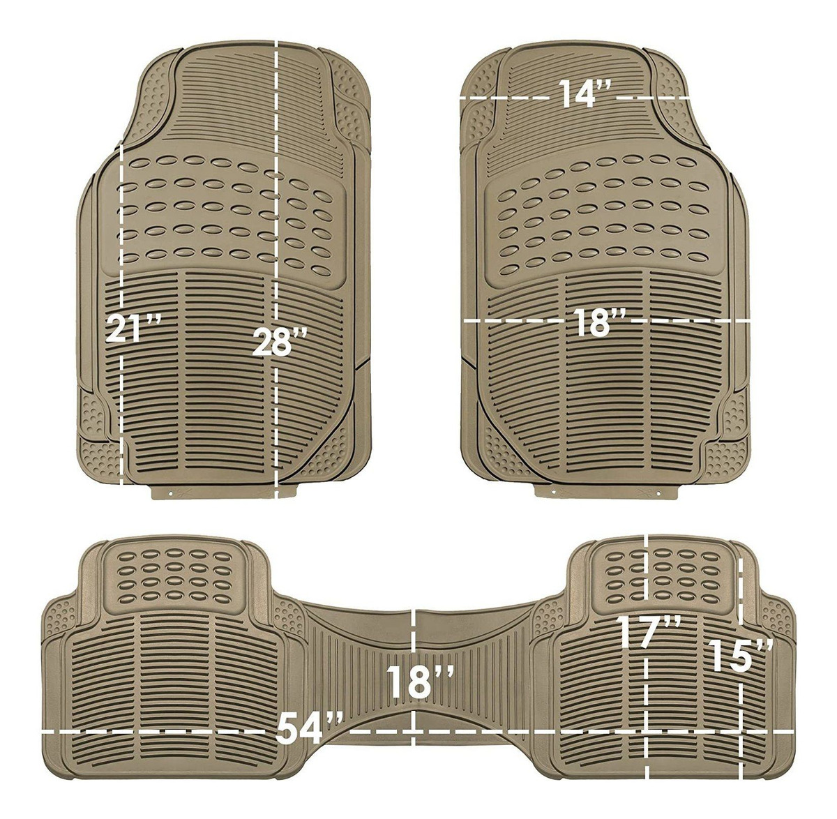 crestas exteriores Tall evitar que los fluidos se fugue en alfombras; esteras de punta pesada de respaldo cama asegura en su sitio; Impermeable y resistente a las manchas; Frente: 28.7″ x 18.5″ trasera: 54.4″ x 17.1″ ; 1 conjunto completo de alfombras de piso para 3 vehículos fila Perfecto para SUVs, minivans y vehículos de la cruce Color beige