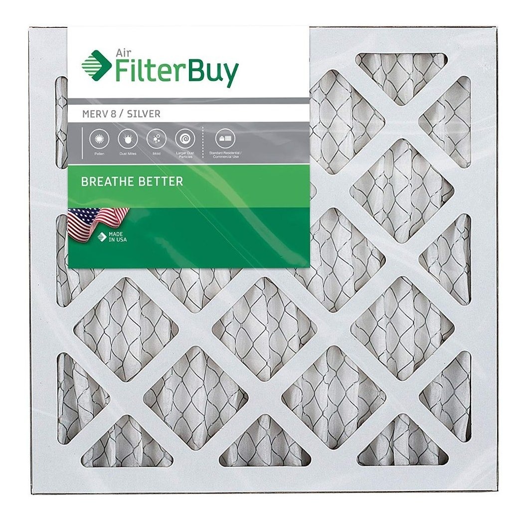 14x14x1 MERV 8 de filtro plisado de aire para AC HVAC o el horno (Pack de 2 Filtros). AFB plata MERV 8, comparable con MPR 300/600 (de estar limpio y sin polvo y polen) .; HECHO EN LOS EE.UU.: Fabricado por FilterBuy en los EE.UU. usando 100% americanos componentes hechos. Ahorrar mucho en un producto de alta calidad mediante la compra directamente desde el fabricante .; TRAPS 90% de AEROTRANSPORTADO PARTÍCULAS: Diga adiós a polvo, la suciedad, pelusa, polen y caspa de mascotas. Da la bienvenida a una mejor calidad del aire interior !; LARGA DURACIÓN: Diseñado para durar hasta 3 meses. Ideal para uso residencial y comercial .; Alta calidad: marcos de filtro están hechos de cartón de grado industrial, que se mantiene fuerte a través de la humedad y temperaturas de hasta 200 ° F. medios sintético proporciona significativamente mayor eficiencia de las partículas de los medios de comunicación de algodón estándar. Todos nuestros productos estan en inglés SKU 6071801863