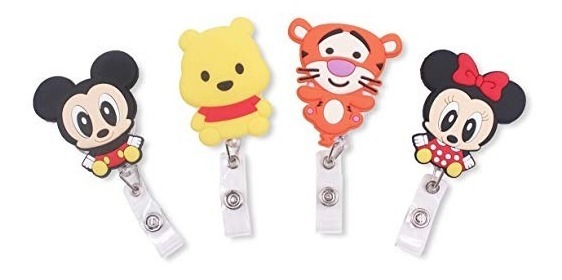 Finex Conjunto de 4 Mickey Mouse Minnie Mouse Winnie the Pooh Tigger retráctil Placa de soporte Placa de identificación del carrete clip en Los titulares de tarjetas Color: Multicolor (Mickey Minnie Pooh Tigger)