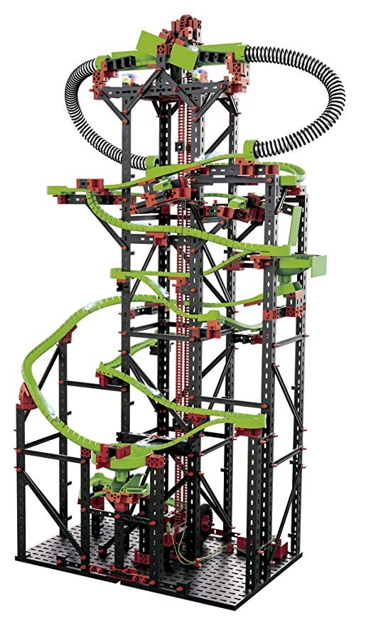 1310 partes de colores y robustos; Haga 3 grandes series escala, rápido y mármol plazo !; Alta calidad, ingeniería alemana! Incluso más alto, más rápido, y más acción: Todo esto está garantizada con la nueva ejecución de mármol dinámico XXL. Casi un metro de altura, con una longitud de la pista de hasta 5.60m, con muchas características nuevas piezas, y los cruces de vía, esta carrera de mármol promete diversión sin límites. Los nuevos flex-tubos permiten, nuevas vías rápidas. Las canicas pasan a toda velocidad durante unos mecánicos distintos circuitos de vía de cruce en. Luego, en su camino hacia abajo, disparan a través del bucle, a través de la tubería trimestre, a través del bucle de salto, hacia más daño. Nuevo: Aún más interacción es posible, ya que el usuario puede intervenir en la ruta del mármol. Con un paso de pista mecánica, el diseño de los flex-carriles se puede desplazar y la ruta se puede determinar en otro cruce con una palanca de conmutación. Además, las canicas pueden ser detenidos o puestos en libertad en un punto de parada. Una vez que llegan a la parte inferior, los mármoles son transportados de vuelta a la parte superior a través del ascensor cadena accionado por motor eléctrico. Tres carreras de mármol diferentes se pueden construir, y ofrecen diversas oportunidades para su modificación. Con la ampliación de la carrera de mármol con los conjuntos PLUS: Conjunto de control Bluetooth y Motor Set XS (hasta dos) puede controlar chicanes en, por ejemplo, los cruces de pista o los puntos de parada a través de Bluetooth, por el controlador o con un teléfono inteligente / comprimido. Incluye un motor XS, 2x arco iris LED, 2x flex-tubos 360, 7x 90 ° curvas, 5x 180 ° curvas, 7X de alta velocidad de flexión-carriles, 8x flex-carriles 90, 16x flex-carriles 180, las bolas de 8x, cruz 2x -over, embudos rotatorios 2x, soporte de la batería de 9V (batería no incluida). Complementos ideales: Todos los juegos de construcción de la Línea Dinámica, Ajuste del motor XS, Control Set Bluetooth, luces de sonido, configuración LED, Ace Set o Power Set. REQUIERE pila de 9V (no incluido). Todos nuestros productos son de Estados Unidos SKU 8111836979