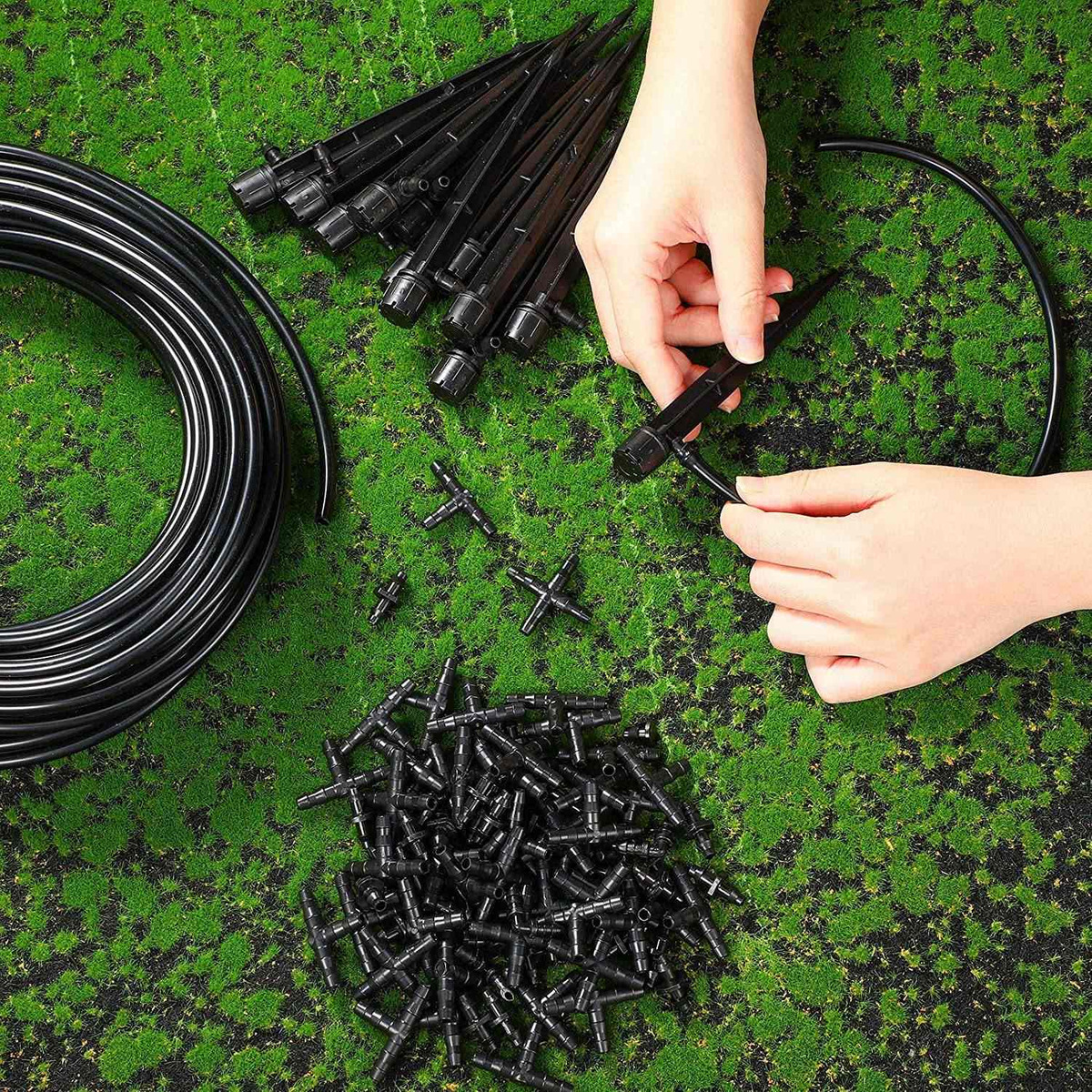 Se puede elegir conectores de riego por goteo adecuados para conectar con un tubo de riego por goteo de 1/4 de pulgada de acuerdo a sus necesidades, y gotero puede ser enchufe directamente en 4 mm / 7 mm tuberías de riego por goteo. Se instalará rápidamente con la ayuda de herramientas simples, lo cual es muy conveniente. Por favor, suavizar la manguera con agua caliente antes de su uso para una mejor conexión.