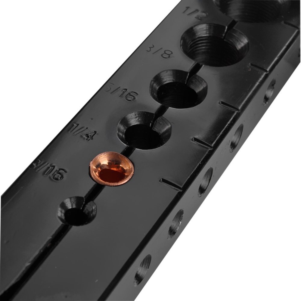 Produce 45 bengalas Grado en cobre suave, latón, aluminio y tubo de acero suave; Un tornillo de fijación único proporciona una fácil fijación y retirada de la tubería, mango tornillo de alimentación grande para el torneado suave con poco esfuerzo; tamaño de las tuberías para la herramienta de la quema son 3/16″ , 1/4″ , 5/16″ , 3/8″ , 7/16″ , 1/2″ , 5/8″ , 3/4″ ; barras de plata de abocardado son para mayor durabilidad y agarre seguro de la tubería tratada térmicamente; Recomendado para materiales blandos como el cobre y aluminio; Recomendado por algunos fabricantes de mini split de bengala R-410A Crea una bengala perfectamente lisa. Se adapta a tamaños: 3/16 pulgadas, 1/4 pulgadas, 5/16 pulgadas, 3/8 pulgadas, 1/2 pulgadas, 5/8 pulgadas. no machacará tubo. Se adapta a todos los accesorios de alta presión estándar. Endurecido quema acero cono, montado excéntricamente en cojinetes de agujas, produce acción de rodadura, incluso para flujo de metal, dando paredes flare uniforme sin gripado. Ideal para agua, gas, Refrigeración y línea de freno Aplicaciones.