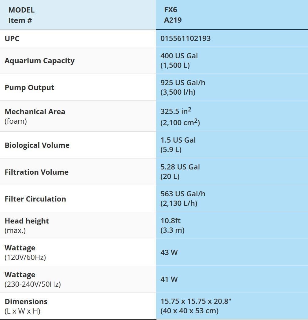 Especificaciones: Fluval Filtro Envase, Filtro Fx6 (400 Gal)
