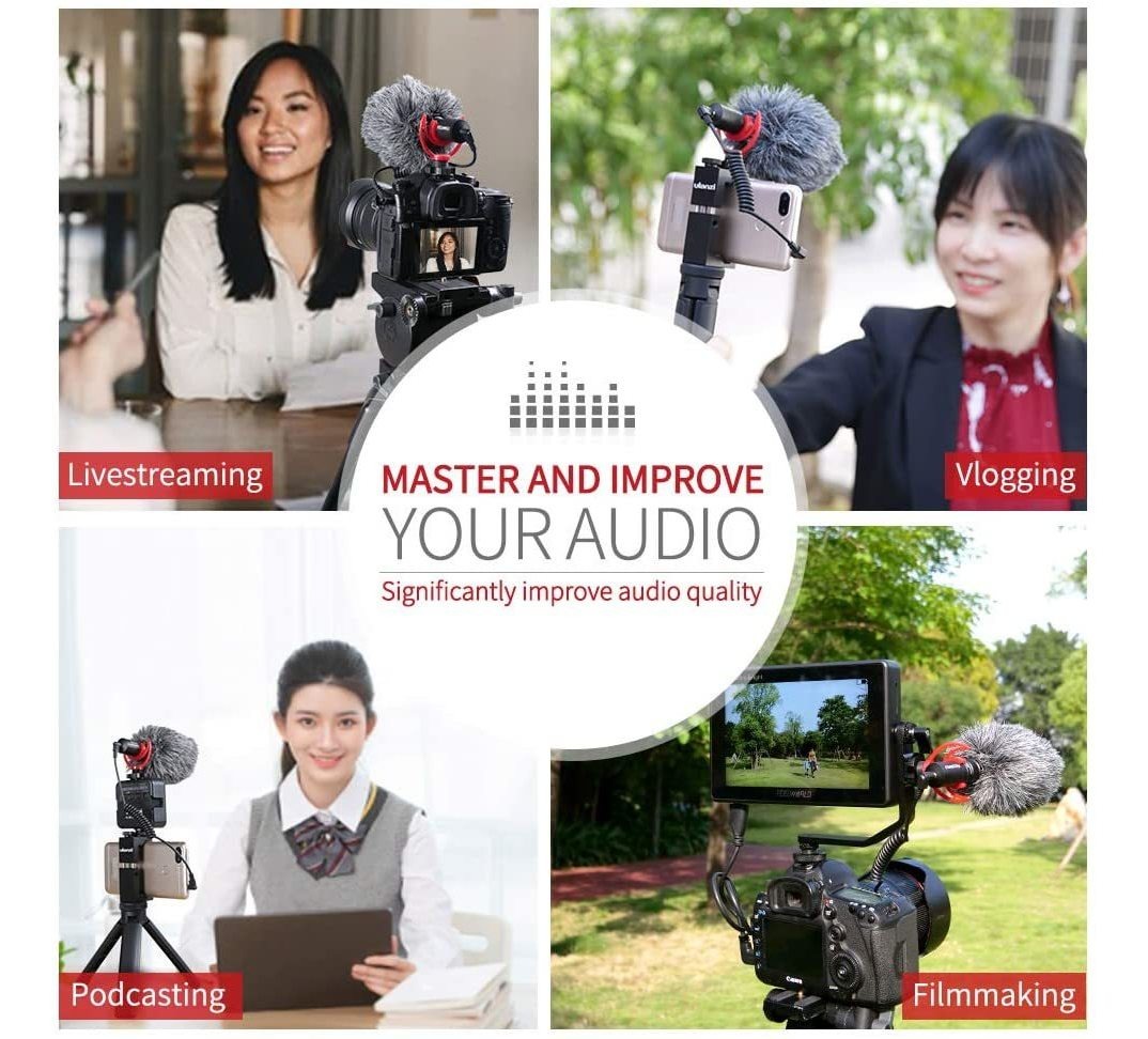 Practico y ligero: el Micrófono de video solo pesa 1,48 oz, Fácil de Llevar. No se Requiere Batería para Cámara réflex digital o teléfonos inteligentes. El Micrófono cardioide con Soporte de choque PUEDE Minimizar los ruidos Ambientales periféricos .; Audio claro y limpio Núcleo de Micrófono Muy sensible, la ONU Escudo de Viento Peludo Y parabrisas de la ONU, el protegido eficazmente el sonido ambiental y el eco, Haciendo Que La Voz Humana mar más Reservas clara y limpia .; COMPATIBILIDAD universal compatible con Dispositivos De Grabación de audio / vídeo. TRS Cámaras DSLR, párr Grabadoras, DJI Osmo y GoPro (DJI Dispositivos y GoPro requieren adaptadores (no incluídos) TRRS teléfonos inteligentes para (los Modelos Más Nuevos de iPhone y Android requieren adaptadores (no incluídos) .; Aprovecha al maximo el Micrófono: Micrófono. de vídeo universal Diseñado para Mejorar la Calidad de sonido en Todos Tus Dispositivos, PUEDES usarlo pecan Importar si estas en Vlogging, videos de YouTube, Tik Tok, Facebook, streaming, cine, viajes y Mucho Más .; El paquete Incluye: 1 Micrófono, 1 cable TRS de 0.138 en, 1 cable TRRS de 0.138 en, 1 protector contra el viento, 1 protector contra el viento peludo, 1 Soporte de choque, 1 hexagonal, 1 Manual de usuario (idioma español no garantizado). Todos nuestros productos estan en inglés SKU 4022168243