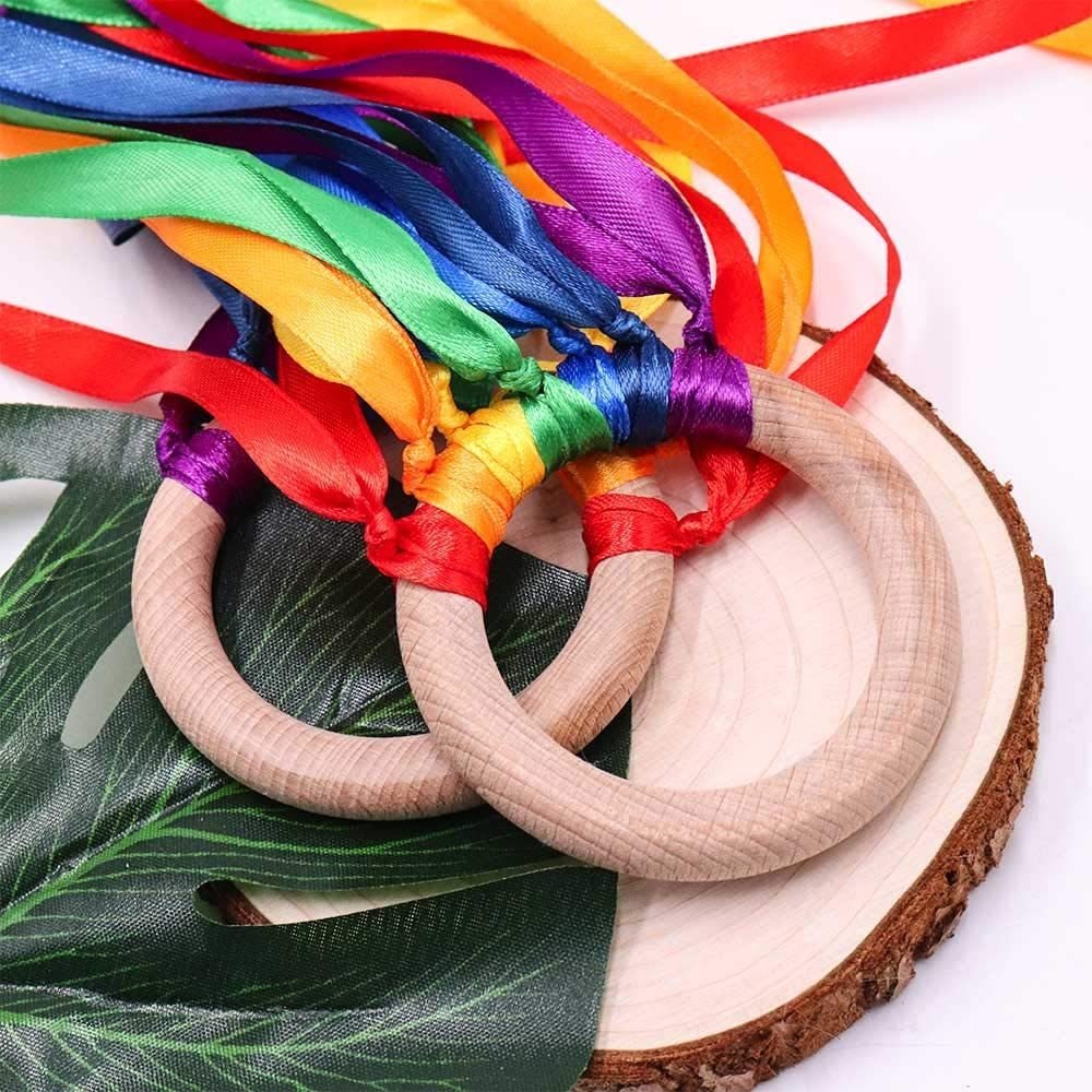 Conjunto de cometas mano Waldorf 2; Anillo es 2,8 y la cinta es 22.4 ; 1 anillo de haya, 9 cinta; Fomentar el juego creativo y hacer ejercicio al mismo tiempo !; Esta cometa Montessori mano hace un juguete sensorial gran bebé Color: color del arco iris