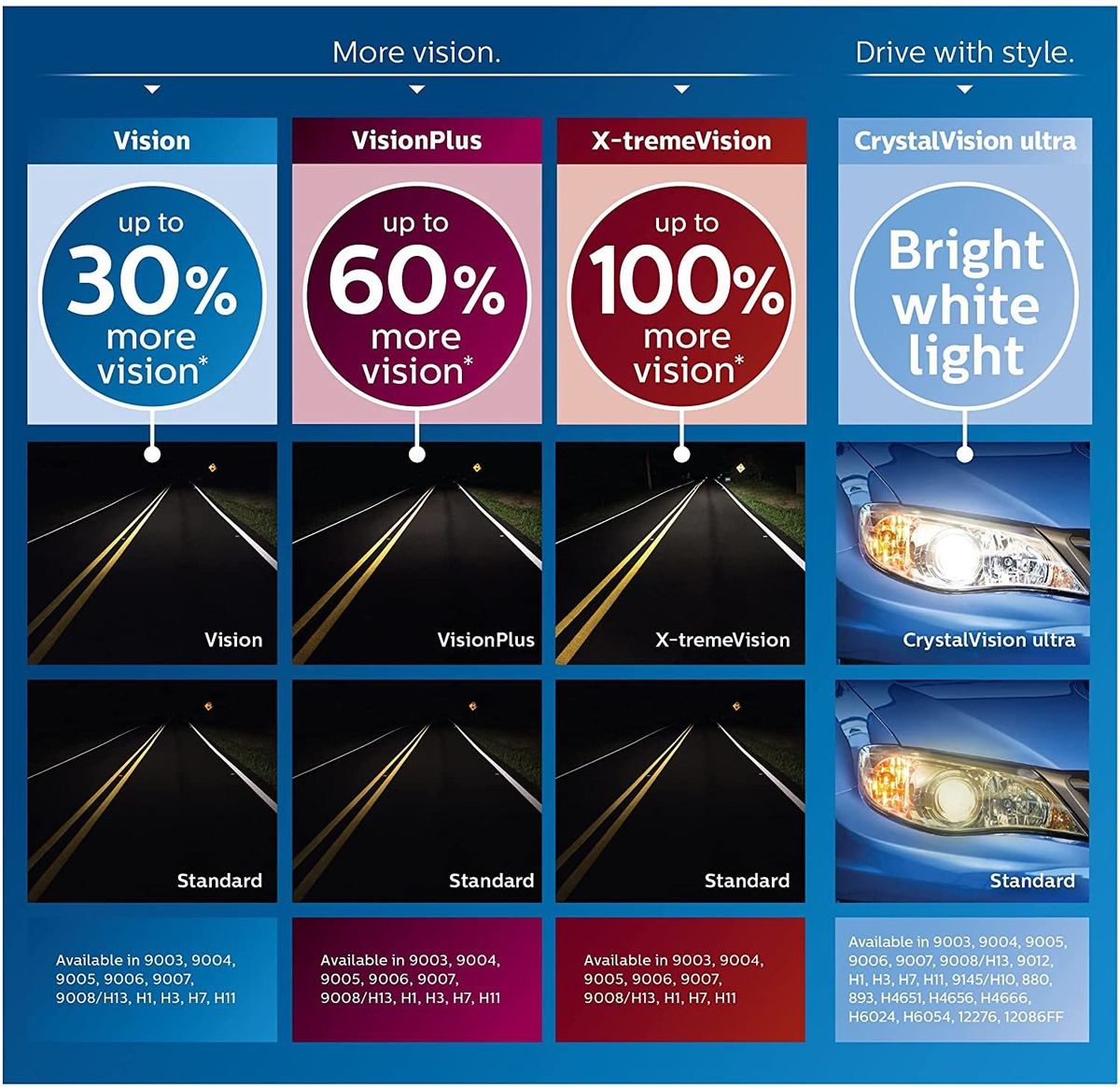 Nota: Por favor lea descripción del producto antes de realizar el pedido; Hasta 100% más de luz (en comparación con una foco halógena estándar); Máxima comodidad y seguridad; Diseño exclusivo de filamento; Hasta 115 foot ya haz Boost your Vision with X-tremeVision! Philips X-tremeVision headlight bulbs offer up to 100% more vision (compared to a standard minimum legal requirements in low beam headlamp test results), for drivers who want to see farther. Based on a unique filament design and optimized geometry, X-tremeVision is engineered with state-of-the-art technology for ultimate performance and more light where it matters the most. Headlights are DOT compliant. Todos nuestros productos estan en inglés SKU 4022203115