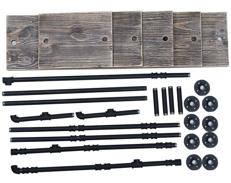 This is a combination of wall mounted shelves and garment racks.; Size:47in wide X 12in deep X 73in tall;The shelves wide 15.5in,the Hanging rod wide 31.5in; Materials:Industrial black Steel pipe and Real Wood board.; Use:Add extra closet hanging space and storage space for clothing retail store ,family ,workroomoffice,Dance room and so.; Advantage :Ertremely durable and long lasting.If you need a different size ,you can email to our when you buy item. Esta es una combinación muy práctico de los estantes y bastidores de prendas de vestir, no sólo para colgar la ropa, sino también para la visualización de obras de arte, accesorios, u otros efectos decorativos combinados con la calidad de la propia tubería, madera real, la apariencia retro, proporcionando una excelente experiencia visual para las familias, tiendas de ropa, oficina, etc; Todos nuestros productos estan en inglés SKU 6102030698