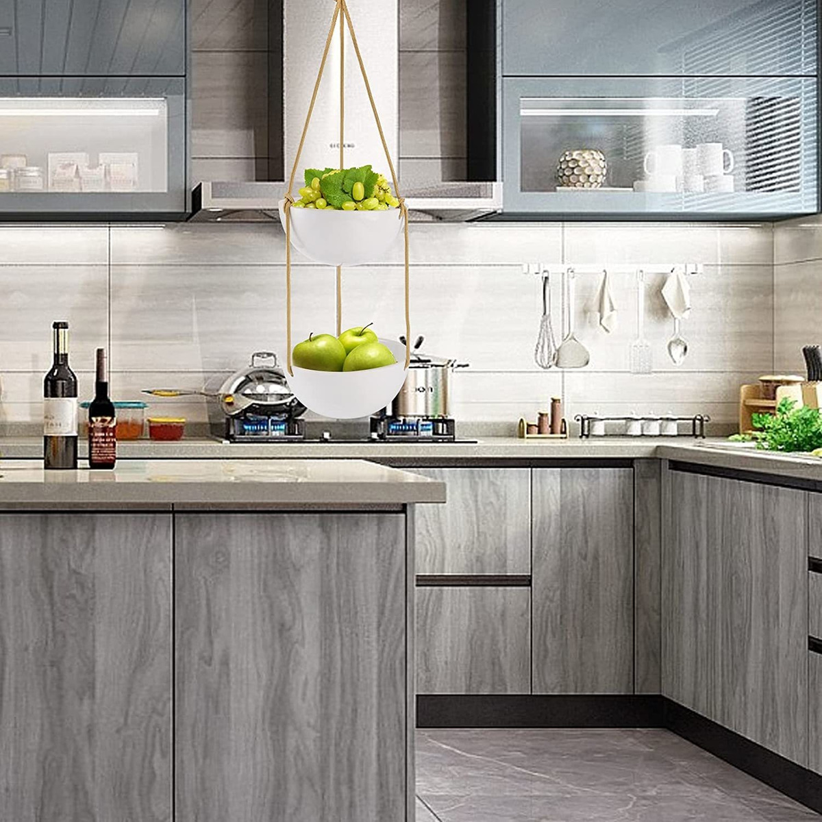 Diseño único de 2 niveles: la maceta colgante doble ofrece una manera simple pero elegante de mostrar 2 tipos de tus preciosas plantas. El diseño de inspiración moderna y el patrón simple de la maceta añade un toque artístico y un toque moderno a interiores de tu cocina, sala de estar, baño o zonas al aire libre como tu patio, terraza, porche y jardín. El colgante vertical es un práctico ahorro de espacio. Perfecto para colgar directamente de un gancho de techo o de un gancho de maceta montado en la pared; Dimensiones de la maceta: cada maceta mide 9.1 in de ancho por 4.3 in de profundidad. Toda la maceta colgante de cerámica blanca mide aproximadamente 38.2 in de largo desde la parte superior de la cuerda para colgar hasta la parte inferior del cuenco. Y puedes deshacer los nudos en el interior de la maceta para ajustar la longitud colgante; Agujero de drenaje y tapón extraíble: orificio de drenaje transpirable en la parte inferior de la cepilladora evita la acumulación de agua y simplifica el mantenimiento de las plantas. Cada maceta viene con un tapón de goma desmontable para mantener la suciedad en el interior y permitir el cambio entre uso interior o exterior; Material duradero: maceta de cerámica de alta calidad con cuerda de poliéster resistente. Las macetas son resistentes a las manchas y fáciles de mantener. La superficie blanca sólida y elegante puede mantener lejos los arañazos, se mantiene nueva después de mucho tiempo de uso. Perfecto para mostrar tus plantas y combinar bien con cualquier estilo decorativo del hogar; Macetas con estilo: con un moderno diseño minimalista redondo con elegante color blanco y acabado suave brillante, este juego de macetas aportará una elegancia refrescante a tu espacio y añade más sentido artístico. Eleva la habitación y acentúa la belleza de tus plantas de interior. Una excelente opción para tus preciosas plantas, como hiedra, hierbas, helecho, suculentas, flores, plantas gateadoras y mucho más Especificaciones: