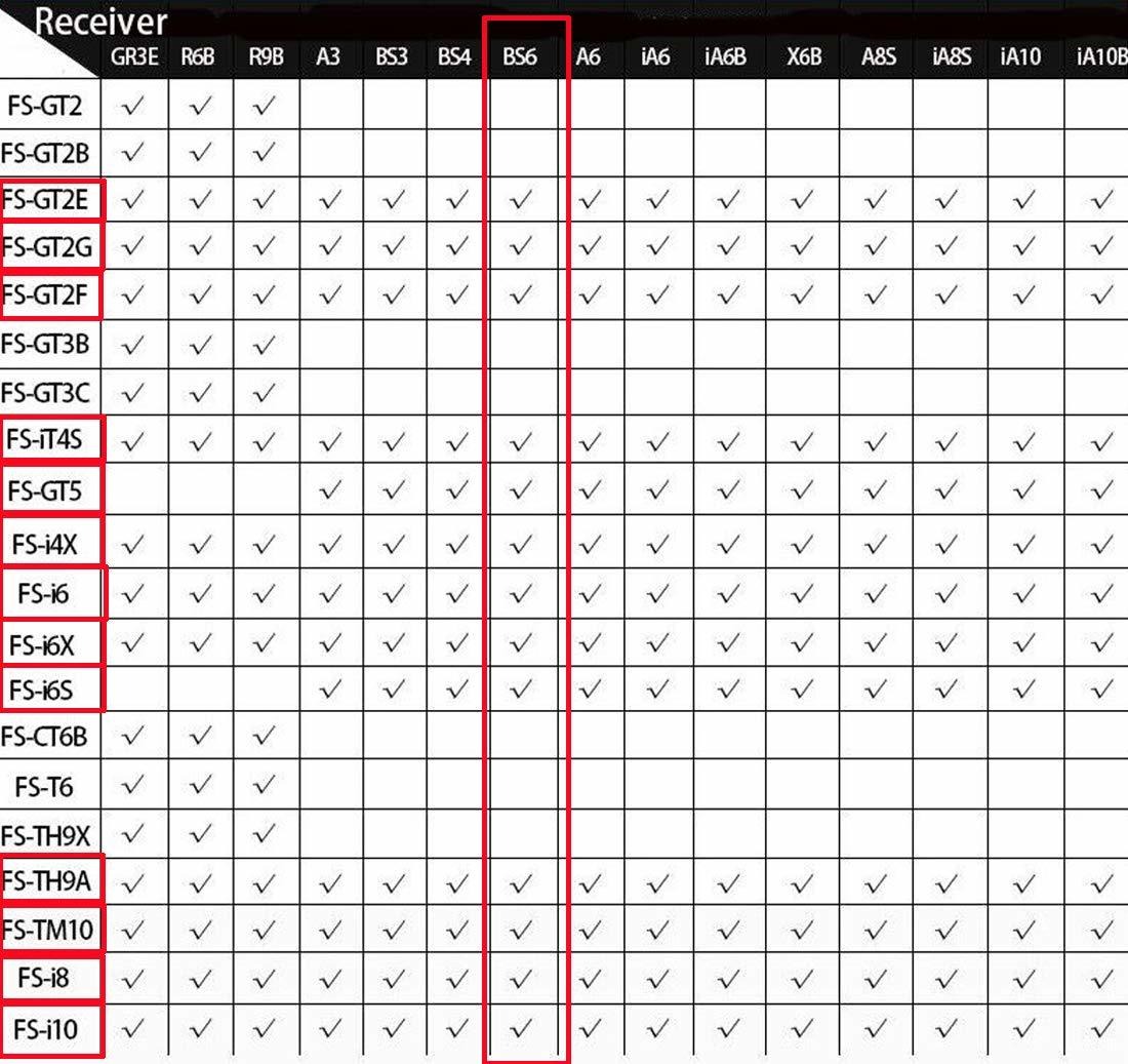 FS-GT2E, FS-GT2G, FS-GT2F, FS-IT4S, FS-GT5, FS-i4X, FS-i6, FS-i6X, FS-i6S, FS-TH9A, FS-TM10, FS-i8, FS- I 10
