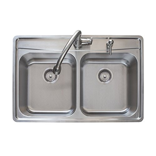 industria de características exclusivas Franke Fast-IN Sistema de instalación rápida que hace la instalación del fregadero tan simple como 1, 2, haga clic !; clips de Fast-EN-pre adjuntos “clic” en su lugar lo que le permite instalar rápidamente el fregadero sin herramientas; 8 pulgadas cuencos profundos; almohadillas insonorizantes ultra silencioso y capa de pulverización eliminar el exceso de ruido y la vibración de las ollas pesadas, sartenes y utensilios; De calibre 20 de acero inoxidable; El lavabo viene con un níquel grifo de satén, igualando níquel satinado dispensador de jabón y dos cestas de colador; En t. Dimensiones – 14.75″ x 16.5″ y 14.75″ x 16.5″ , Int. Profundidad – 8 “; cabe el tamaño mínimo del gabinete 36” Tamaño: 8 pulgadas | Estilo: 2-Hole
