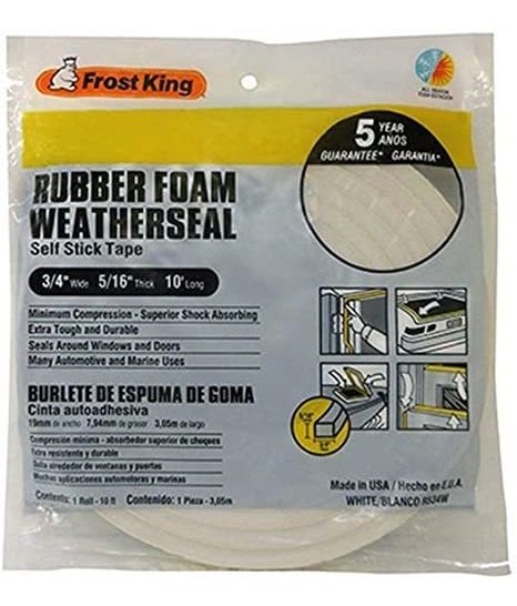 Cinta Frost King esponja de goma espuma con una compresión mínima es de una cinta autoadhesiva fiable duro con docenas de usos. Se puede utilizar como un burlete, como un sello alrededor de los acondicionadores de aire, como una junta y para amortiguar y estabilizar los electrodomésticos grandes. En los automóviles, camiones y barcos, se puede prevenir traqueteos, vibraciones y chirridos. Todos nuestros productos estan en inglés SKU 12062108989