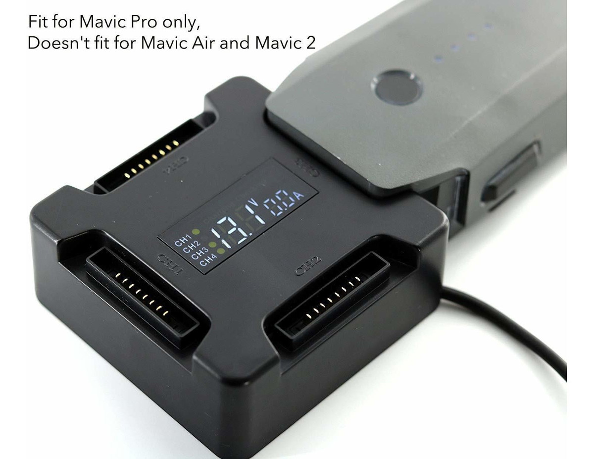 [No adaptado a MAVIC MAVIC 2. FIT TODOS LOS MODELOS 1] 4 en 1 cargador, especialmente diseñado para DJI Mavic Pro / Platino RC Quadcopter con indicador de carga. Trabajar por sólo Mavic Pro, no puede trabajar para Mavic Aire, Mavic 2; Puede cargar 4 pilas secuencial, ~ 60-80 minutos de tiempo de carga por batería; Muestra la tensión de carga, el estado actual de la batería y en general; Fuente de alimentación no está incluido – se puede utilizar el cargador original DJI; Funciona con el cargador de coche Mavic y también cargador de enchufe de pared Mavic. Las baterías de la imagen no están included.Work de Mavic Pro solamente, no pueden trabajar para Mavic Aire, Mavic 2 Todos nuestros productos estan en inglés SKU 10101906984
