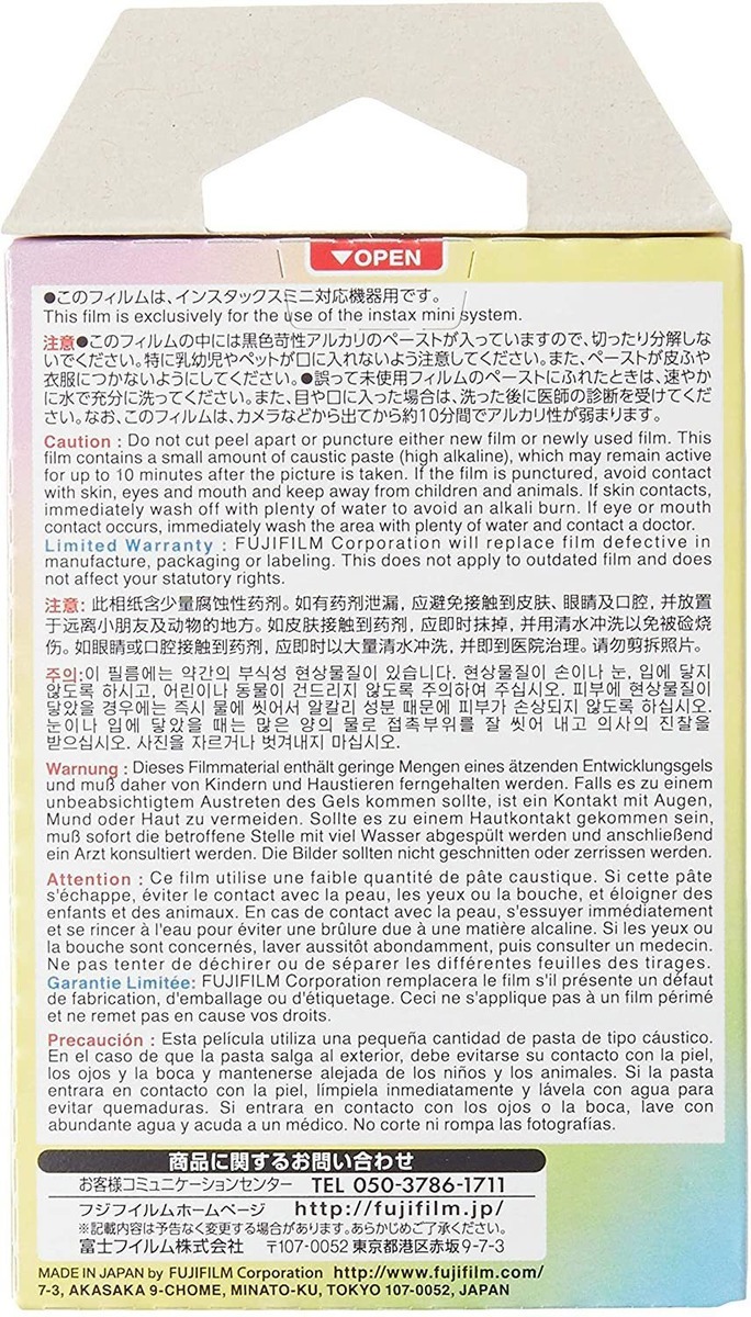 Cada imagen Tiene Un marco de color de macarrón diferente .; Paquete de 10 Exposiciones .; Producir imagenes de Tamaño de Tarjeta de Crédito Instax Mini de 2 x 3 Pulgadas EN ISO 800 .; Compatible con any Cámara de Estilo Instax Mini y Impresora Móvil para Compartir teléfono inteligente. Tamaño: 1 Caja