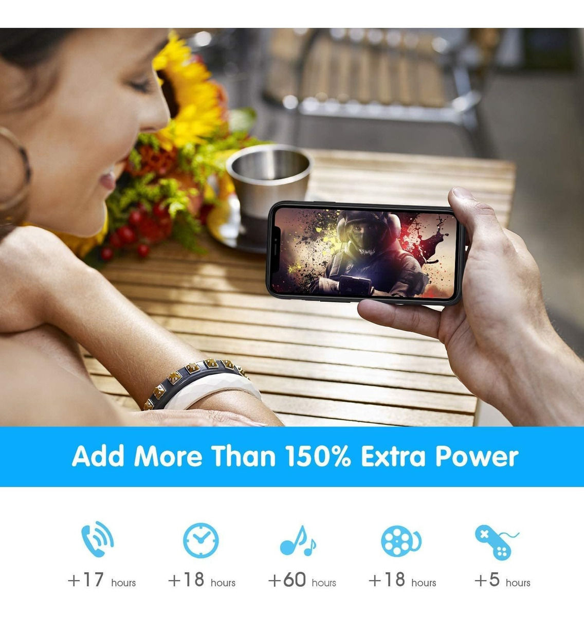 Nota importante: Esta funda con batería de 7800 mAh solo es compatible con iPhone 11 Pro Max (6,5 pulgadas), no funciona con iPhone 11 o iPhone 11 Pro. No compatible con auriculares Lightning de iPhone o auriculares tradicionales de 0.138 in. Solo funciona con Apple Airpods u otros auriculares Bluetooth inalámbricos.; Larga vida de carga: esta potente funda recargable de alta capacidad de 7800 mAh para iPhone 11 Pro Max de polímero de litio puede proporcionar efectivamente un 200% más de duración de la batería extra para tu teléfono, hasta 17 horas de tiempo de conversación, 18 horas de tiempo de navegación en la web, 60 horas de escucha música, 18 horas de vídeo, 5 horas de juego 3D.; Protección y carga de 360 2 en 1: chips internos de alta calidad integrados que pueden evitar cortocircuitos, sobrecalentamiento y sobrecarga. Diseño de parachoques completo de 360 y carcasa trasera rígida para proteger tu teléfono de arañazos y otros desgastes diarios (no incluye la pantalla del teléfono).; Tecnología de sincronización avanzada: puedes sincronizar tu iPhone 11 Pro Max a tu MacBook, PC o portátil sin quitar la cubierta de la batería. También es 100% compatible con todas las versiones iOS y futuras actualizaciones de software iOS, no compatible con Apple CarPlay.; 5. Servicios perfectos: siempre nos esforzamos por ofrecer el mejor servicio al cliente. Vamos a resolver tu problema en 24 horas, te daremos una solución satisfactoria Trswyop 7800mAh batería recargable caso de carga extendida para iPhone 11 Pro Max (6.5 pulgadas)- negro