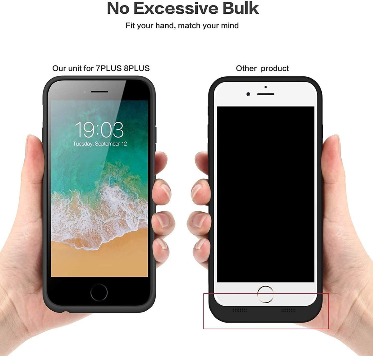 -La funda de batería para iPhone 6 Plus/6s Plus/7 Plus/8 Plus se puede cargar con el cable Lightning de tu iPhone.