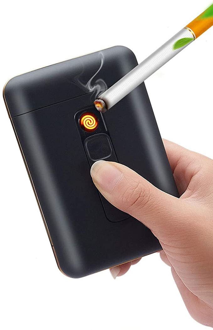 Capacidad para ONU paquete completo de Cigarrillos de 3,307 en (20 piezas), por Lo Que No Puede Contener 100 Cigarrillos .; Material de Fuerte y Sólido del Soporte de Cigarrillos duros protegido tus Cigarrillos de Que se arrugen o Mojen, Pero No lo sumerjas en agua .; Material de plástico rígido y metal, superficie de pulido Cómoda al tacto .; El encendedor USB recargable this Integrado en La Caja de Cigarrillos, no te preocupes por olvidar el encendedor .; Tamaño: 3,3 Pulgadas (Longitud) x 2,2 Pulgadas (anchos) x 0,9 Pulgadas (grosor), solo 3,6 onzas de peso Fácil de Cuidar. Color: Negro