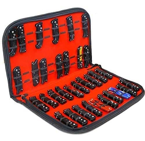 Funda de bolsillo superduradera: este soporte para cuchillos de almacenamiento está hecho de tela de piel sintética resistente al agua, se ve clásico y duradero con gran artesanía. Acolchado grueso en el interior con un tacto agradable para evitar que los cuchillos se rocen entre sí una vez cerrados, mantiene tus cuchillos bien organizados y protegidos. Un artículo imprescindible para un coleccionista de cuchillos.; Bolsa de almacenamiento plegable de gran capacidad: tamaño plegado (15.6 x 11 pulgadas), tamaño abierto (21.7 x 15.6 pulgadas), puede contener más de 40 cuchillos o relojes (cuchillos no incluidos), mucha flexibilidad y espacio, un artículo imprescindible para cualquier coleccionista ávido. Disponible en una amplia gama, desde caza hasta tácticos y coleccionables, con el almacenamiento perfecto y vitrina.; Funda para cuchillos pequeños/pequeños: protección completa: 2 cremalleras fuertes que se pueden cerrar, se pliega perfectamente, evita que las herramientas se caigan, de forma segura y fácil de almacenar cuchillos de bolsillo, cuchillo de supervivencia, juego de cuchillos, cuchillo de cocina, cuchillo de chef, cuchillo táctico, cuchillos plegables para exteriores, mini cuchillo EDC, carpetas EDC, carpetas de bolsillo, cuchillo de forma extraña, barras de palanca, luces de bolsillo, multiherramienta, relojes, etc.; Juego de cuchillos de bolsillo perfecto para hombres: diseño simple y útil, bonita funda para cuchillos, fácil de transportar. Regalo perfecto para papá/hermano/novio/marido/él a quien le gusta coleccionar, senderismo, caza o actividades de bricolaje. Perfecto para organizar y almacenar tu colección en casa.; Funda de transporte de la colección de cuchillos tácticos y compra 100% sin riesgos: si no estás satisfecho con nuestra funda plegable clásica compacta, te proporcionaremos un servicio de reembolso del 100% sin preguntas, sin preocupaciones. Imprescindible para un amante de los cuchillos de bolsillo. Todos nuestros productos estan en inglés SKU 91221038840