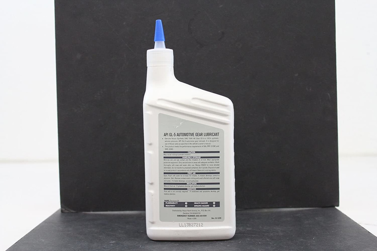 Diseñado para su uso en ejes de Nissan; 100 por ciento sintético, presión extrema, API GL-5 lubricante para engranajes de automoción; Cumple con los requisitos de rendimiento de MIL-PRF-210SE y SAEJ2360; Diseñado para su uso en ejes de Nissan como se especifica en el manual del propietario del vehículo es; El líquido exacta fabricante de equipos originales que su vehículo viene con Nissan productos son elaborados con los mismos altos estándares que su vehículo Nissan. Se desarrollan a través de la prueba de rendimiento y durabilidad de la comunidad profesional. Todos nuestros productos estan en inglés SKU 70720059186