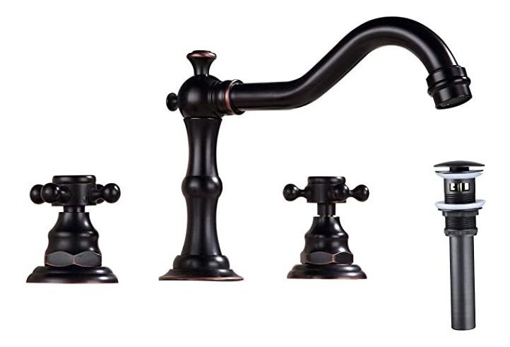 Cubierta montó 3 agujeros, ajuste para los 8 pulgadas Center (la izquierda a la derecha) Sink al menos; Frío y la mezcla de agua caliente, controlado con dos asas; Pop hasta la fuga con rebosadero y 3/8 Incluye manguera; acabado en bronce de goma de aceite para una rica apariencia antigua y complementos estilos más transitorios; Prima de la construcción material para duradero y fiable Todos nuestros productos estan en inglés SKU 21052017673