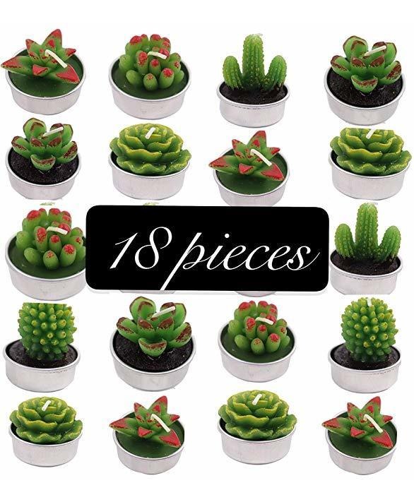 GiftExpress – Velas de cactus suculentas, Delicadas Velas sin aroma para Decoración del Hogar, spa, boda, fiesta, día de San Valentín, regalo de cumpleaños (18 unidades) 18 velas de cactus suculentas en 3 Paquetes, INCLUYE 6 Formas Diferentes .; Hecho de material de cera de parafina de pecado Producir tabaco negro. Sin perfume, sin llama y sin humo .; Tiempo de combustión: Alrededor de 4 – 5 horas, la parte suculenta Puede Ser constante Durante UNOS 30 Minutos .; Tamaño de la vela: hasta 1,5 en de Diámetro y 1,5 en de altura con portavelas de metales .; Perfecto dormitorios Pará, comedores, salas de estar ¿Y CUALQUIER Lugar Que necesite Un ambiente romántico y refrescante. Todos nuestros productos estan en inglés SKU 8111904959