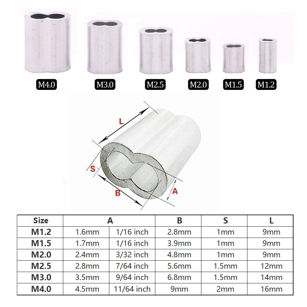 Especificaciones: Glarks 210pcs 6 Tamaño Aluminio Doble Barril Del Manguito De