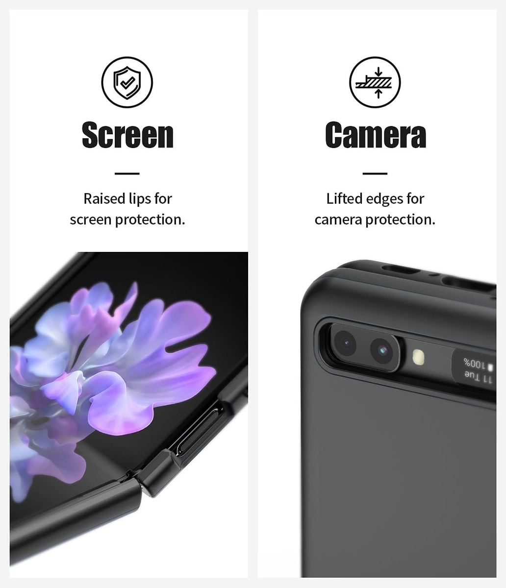 Diseño preciso que proporciona el ajuste perfecto y fácil acceso a puertos y botones. Compatible con Galaxy Z Flip / Galaxy Z Flip 5G (2020); Una funda de diseño delgado fabricada con TPU flexible y materiales de PC duro antigolpes protege tu Galaxy Z Flip de golpes y caídas sin añadir volumen extra.; Esta funda con tapa para Galaxy Z es totalmente compatible con la carga inalámbrica sin interferencias.; Construcción de una sola pieza con cobertura de bisagra y bordes elevados que ofrece una protección completa segura de 360 contra arañazos que tocan superficies planas. con tu Galaxy Z Flip.; Diseñado con color mate suave, hace que tu teléfono móvil sea único y más a la moda. Todos nuestros productos estan en inglés SKU 91221077568