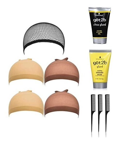 El juego incluye: Got 2b Ultra pegadosFabricación Invencible Styling Gel 1,25 oz; Got2b encolada Styling Rematar Glue 1,25 oz; Negro de malla Gorra, 2 Caps Paquete desnuda Natural Beige Peluca, 2 Paquete ligeras de los casquillos Brown peluca; 3 pc cola de rata hueso de la cola Conjunto de peine; 5 Caps Paquete peluca: Suave, material delgado, ligero y elástico para ayudar a mantener el cabello en su lugar; Fácil de usar y lavar. Tomar el pelo a nuevas alturas con Got2b Ultra pegadosFabricación Invencible Styling Gel y Got2b pegadosFabricación Styling Rematar pegamento .; Haz puede ser utilizado para la peluca de decisiones y la peluca y la extensión del pelo Styling; Peluca completa Hacer Kit de accesorios y la extensión del pelo Styling Kit para profesionales y estudiantes El juego incluye:
