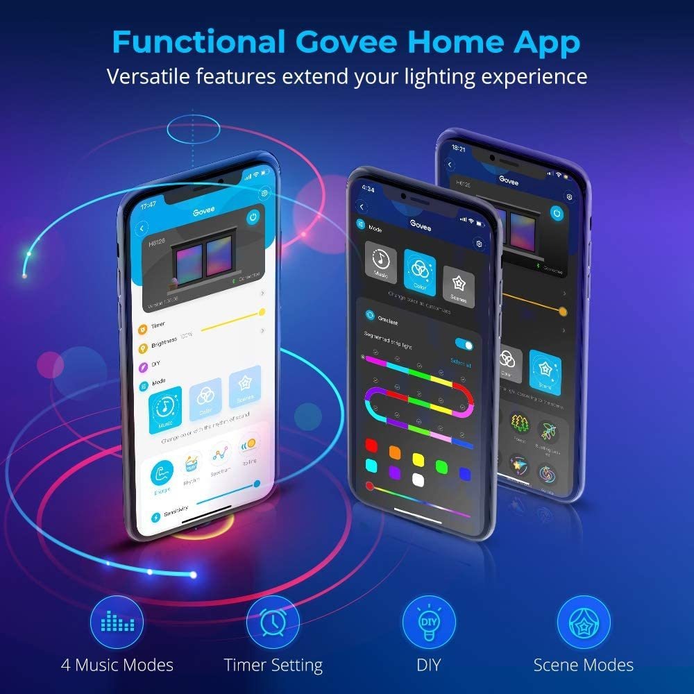 TECNOLOGÍA RGBIC: Con chips IC Integrados, Las Tiras de Luces LED PUEDE MOSTAR MOSTAR MÁS DE COLOR SIMULTÁNEMENTE, SIMILAR UNA ARCO IRIS. Reinventa La Decoración de TU INTERIOR INTERIOR CON COLORES Y EFECTOS VIBRANTES (NOTA: Las Tiras de Luces Son Incorportable y 2 Pies de 16.4 Pies)); Mass colores. MEJOR CONTROL: Personaliza CADA UNO DE LOS 15 SEGMENTOS EN UNA SOLA TIRA Y DISFRUDA DE PANTALLAS MÁS COLORIDAS. Elige Entre 16 Millones De Colores Para más Variedad De Colores A Través de la Aplicación Govee Home. (Nota: Las Tiras de Luces Son Incorportables y Para USO EN INTERIORES); Aplicamiento Con Todas Las Funciones: LA APLICACIÓN GOVEE INICIO TE OFRECE UN CONTROL AVANZADO DE TUS LUCES Y ACCESO A INCRETEBLE CARACTÍSTICAS Y EFECTOS. Establecido el estado de Ánimo para cualquier Ocasión Interior O Crea TU PROPIO HORIO DE LUZ CON LA FUNCION DE TORNIZADOR.; MODOS DE ESCENA Y SINCRONIZACIÓN DE MÚSICA: Elevación TUS Fiestas A Nuevos Niveles Con Estas Luces de Tira de Música Que Se SINCRONIZAN CON TUS CANTÍAS FAVORITAS CON FACILIDAD. CON 64 MODOS DE ESCENA, PUEEDES MEJORAR TUS CENAS A LA LUZ DE LAS VELAS CON EL MODO DE CITA O TUS NOCHES DE CINE CON EL MODO DE PELÍCULA.; Selección De Color Inteligente: Sube Tus Fotos A La Aplicación Gove Home Y Mira De Forma Impresionante, Ya Que Conexión Los Colores Y Aplícalos A Luces Tus. 9 Efectos de Iluminación, Como Decoloración, Salto y Parpadeo, Permiso Que Los Colores Se Munesten Dinámica. Todos nuestros productos estan en inglés SKU 21072107349