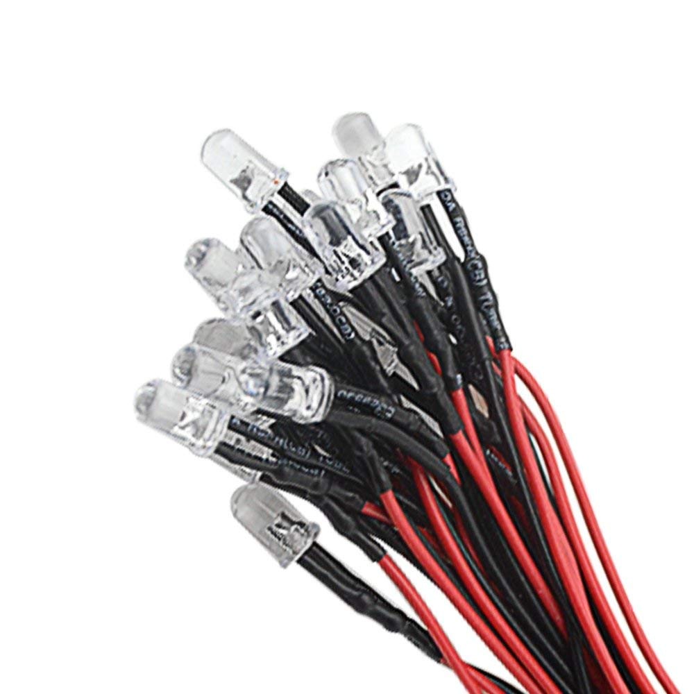 Precableado con construido en resistencia, soldado bien y heatshrinked, ideal para aficionados, RC coche, barco, construcción personalizada, bricolaje Coche Barco Juguetes Partes y multiplicar los proyectos de iluminación, etc .; titulares de LED de metal de 5 mm, seguro para sujetar firmemente LED; 9V conector clip de la batería por cable, gran reemplazo para un conector de batería rota en su dispositivo electrónico .; Color: rojo, verde, blanco, amarillo, azul, parpadeo rápido y lento falshing .; Rango de tensión de funcionamiento: DC 12V-2v. 2v muy tenue, 12v muy brillante .; Contenido del paquete: 70pcs LED 5mm pre luz cable (10pcs cada color) + 20 pcs 5mm LED de la lámpara Holder + 10 PC batería Clip de conector. Especificación: