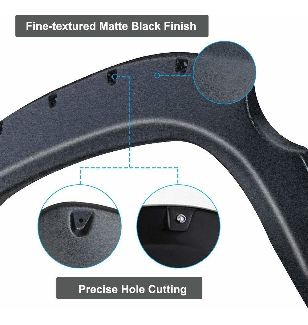 ¿ modelo compatible – encajar perfectamente 2007-2013 Chevrolet Silverado 1500 5.8 Pies cama corta (Excluye 2007 modelos clásicos), no aptos Sierra. Cada llamarada guardabarros está diseñado para el modelo específico, por favor revise su vehículo de año, marca y modelo .; ¿ PREMIUM ABS MATERIAL – Cada conjunto de Fender Flares está hecho de material ABS prima para asegurar que los guardabarros son más brillantes y más duraderos. No todos los materiales antiguos y materiales reciclados mezclados .; ¿ FÁCIL DE INSTALAR – recorte exacto para adaptarse a las ruedas perfectamente. Manual de instalación y kit de accesorios de montaje necesarios están incluidos en el paquete. (Por favor, consulte el kit de hardware antes de la instalación Si las partes que faltan, póngase en contacto con nosotros tan pronto como sea posible..); ¿ protección UV – polvo UV Agregar durante el proceso de producción para asegurar que las llamaradas de la defensa están libres de tiza y el agrietamiento. Mate de diseño acabado en negro, podría ser pintado según el color específico de su vehículo .; ¿ OFF ROAD Look – Proteger la rueda y del barro, arañazos y otros daños externos. El paquete viene con un conjunto de Fender bengalas, kit de montaje y manual de instrucciones. Todos nuestros productos estan en inglés SKU 6012033846