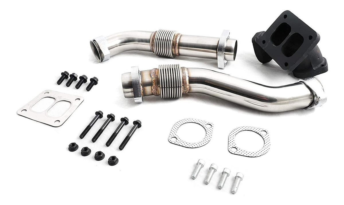 Todas las juntas, tornillos y elementos de fijación incluidos; fuelle para uso industrial permitir la expansión y contracción del calor generado por el motor; 409 construcción de acero inoxidable; 1 año de garantía; Compatible con todos los camiones diesel 1994-1997 OBS Ford 7.3L Powerstroke Todos nuestros productos estan en inglés SKU 70720050815