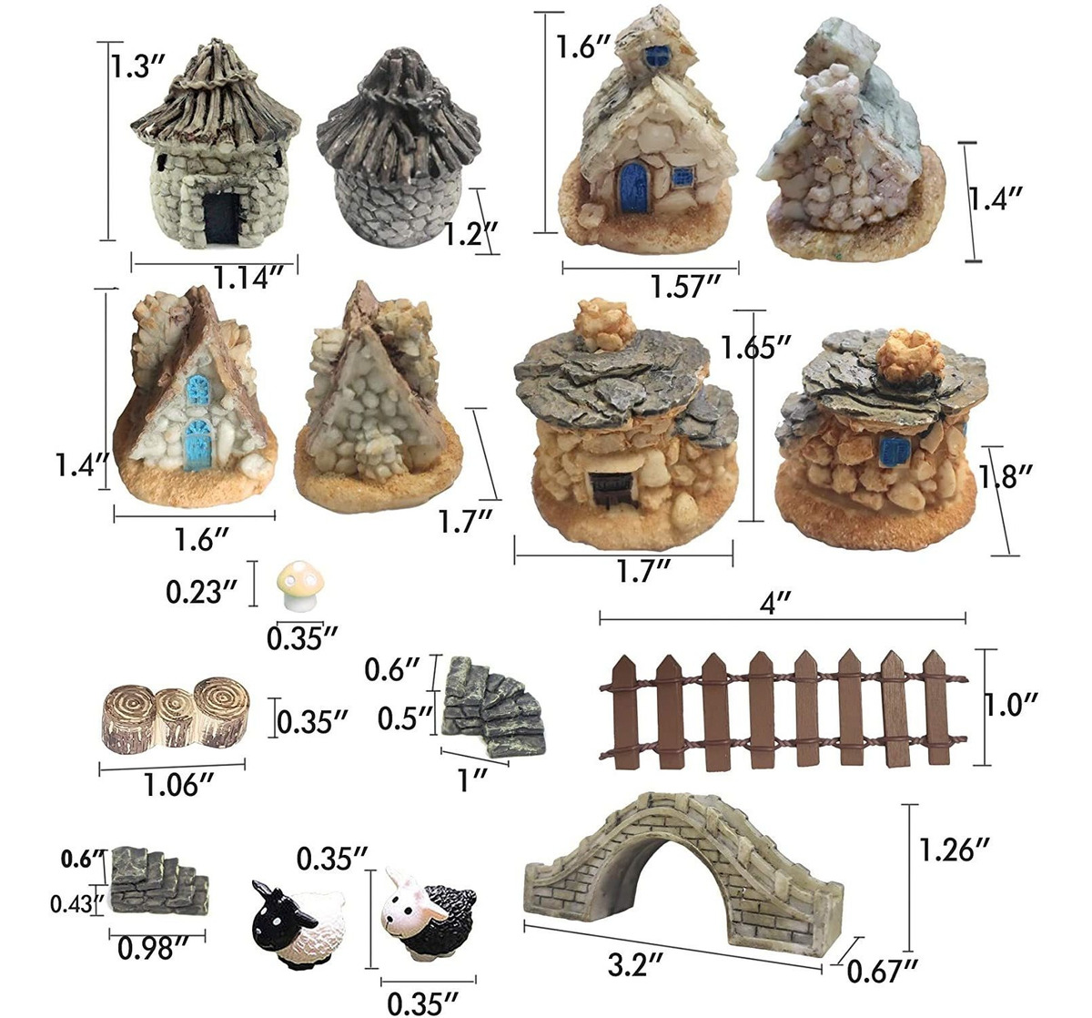 LINDO Y artesanía fina: Estos accesorios de jardín miniaturas de hadas tienen forma linda y exquisita artesanía, que es muy importante para jardinería bricolaje en el paisaje micro. Fácil de usar y mover fuera, simplemente para poner estas figuras en miniatura en cualquier posición que le gusta crear su jardín de hadas y la casa de muñecas DIY para la decoración. Se puede utilizar en interiores y al aire libre .; todo tipo de artículos: Esta hada miniaturas jardín kit que incluye 4 en miniatura casas de jardín de hadas, 2 pequeña ovejas (de plástico), 1 puente, 1 muñón, 5 setas (de plástico), cercas 2 piquetes (de madera), 2 Pequeña Escala de piedra . La mayoría de ellos están hechos de resina de alta calidad. Son muy adecuados para jardines en miniatura, proyectos de contenedores de vidrio, bonsai, patio de micro paisaje, escenas de estudio, macetas, adornos suculentas, pequeña embellecimiento, casas de muñecas y decoraciones de plantas .; ESPECIAL REGALO Y ADVERTENCIA: Ya se trate de Navidad, Acción de Gracias, Día de San Valentín o los cumpleaños de familiares y amigos, esta casa de jardín en miniatura es muy adecuado como un regalo especial para los familiares y amigos, niños, niños, niñas. TIPS: Este kit de jardín en miniatura de hadas no es apto para menores de 3 años, debido a que las piezas pequeñas y no comestibles; Se requiere supervisión de un adulto .; AMPLIA GAMA DE APLICACIONES: Estas casas de jardín de hadas linda en miniatura, puente, animales, hongos, cercas puede construir un mundo de fantasía para usted en el recipiente, apto para Mini apoyos jardinería, pequeñas decoraciones de jardín de hadas diy, perfecta para macetas, ventanas, estatuas de gnomos, figuras, árboles, plantas, pequeñas estatuas, las mesitas de hadas, piedras pequeñas, villas, y otros artículos decorativos .; CALIDAD DE POST-VENTA: Todos los productos comprados en Gemhope pueden disfrutar de alta calidad de servicio post-venta. Por favor, no se preocupe y realizar un pedido a gusto. Es muy sencillo. Si no te gusta, lo envía de vuelta y le devolveremos la misma. Si el producto está dañado debido al transporte, háganoslo saber a través de Amazon y se enviará el nuevo para libre. También los invitamos a comentar sobre la experiencia real después de experimentar el producto. Todos nuestros productos estan en inglés SKU 4032121671