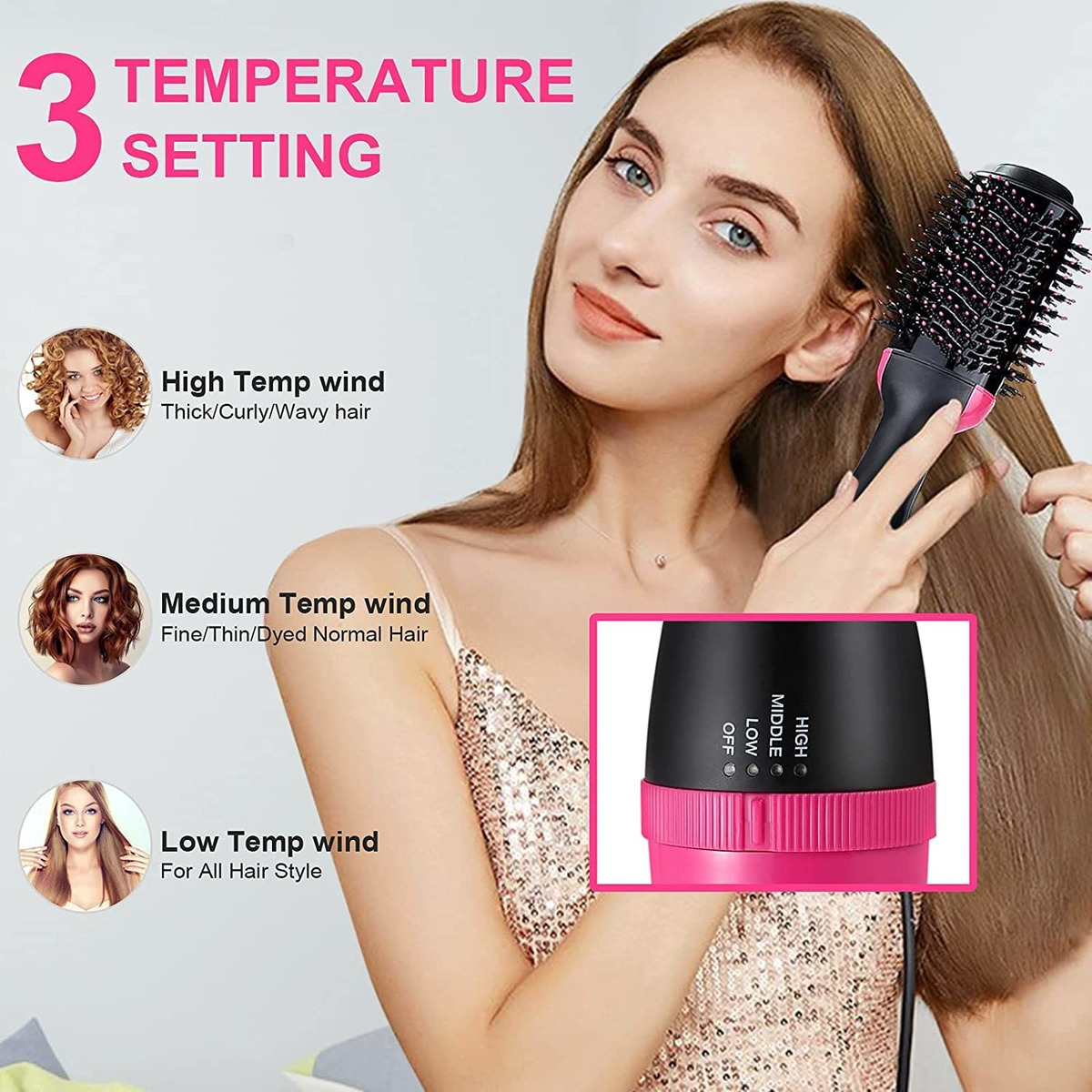 Great alternative to Hair Dryer Comb Straightener Curler : The multifunctional one step hair brush dryer and styler volumizer can fast dry and style your hair easily, saving much time. With the hot air brush, you can make waves or straighten your hair to make your different hairstyle , keeping your hair natural, moving, and volumized just like you have just left the salon.; Advanced Ionic Technology Makes Hair Smoother Shinier: Built-in ion generator, the brush hair dryer can release negative ions, keep the moisture of your hair, reduce frizz and static, make hair softer, smoother, and shinier. It also helps nourish damaged hair and reduce split ends and knots. 360air flow vents distribute the heat evenly, penetrate and dry the hair quickly.; Easy to Use Customized Settings: The hair brush blow dryer has 3 adjustable heat levels for styling versatility. You can choose which is best for your hair and also take care of your hair by controlling the temperature. Unlike a conventional blow dryer, this dryer brush can be placed closer to the scalp for lift. It dries faster than blow dryers, perfect for faster drying, straightening, curling, styling, easy to use.; ALCI Safety Plug : The eleacc air dryer and volumizer is designed with an ALCI safety plug which is required for US hair dryer. You can find the test button and indicator light on the plug which can ensure safety before use. The hair drying brush is the best option for natural looking manageable hairs.; Professional Design: The 360 swivel tangle-free cord and oval design allow flexibility for you to move freely to achieve the desired hairstyle quickly. Designed with an oval shape, nylon pin, and tufted bristles, it can prevent hair tangles and make your hair fluffier, smoother, shinier, and more volumized. Todos nuestros productos estan en inglés SKU 91221053307