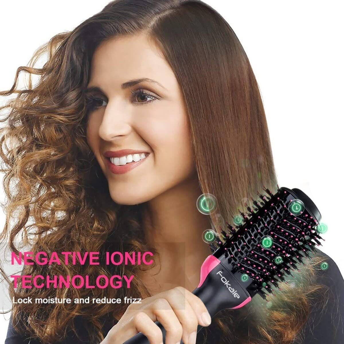 Negative Ionic technology: Negative ions saturate the airflow to reduce the size of water droplets for faster drying. It saturates airflow for faster drying, and reduces frizz and static, leaving your hair looking smooth and shiny. The Ceramic Coating helps protect hair from over styling with even heat distribution that penetrates hair quickly and dries from the inside out. The negative ion hair dryer brush is a must have for all your hair care needs.; Multifunctional Hot Air Brush: Use it as a brush blow dryer, brush hair dryer, hair styler, volumize your locks, make your hair curly or wavy and straighten for dry as well as wet hair and all hair types for professional results. Streamlined design, easy to use and easy to hold when using, easy to handle. This hair dryer volumizer brush is your One Step Hair Dryer for all your hair styling needs.; 3 Heat Settings: 1000W/110V-120V, Power provides just the right heat, drying your hair in minutes. 3 Heat / 2 Speed Settings (Cool / Low / High) for meet your different hair needs, to create different hairstyles for you, heat up quickly, and easily shape in 10-20 minutes. The bottom is a rotary adjustment gear switch, high heat is suitable for thick hair, low heat is suitable for fine hair/damaged hair, hot and cold styling, flexible settings, and lock beautiful hairstyles.; Unique Oval Design and Bristles Extradinaire: The unique oval shape helps with smoothing the hair while the round edges create volume and curled ends. Bristles has massaging ball tips which helps to dry, smooth and style hair in minutes. Double combs elevate the hair root, making your hair soft and fluffy. The massaging ball tips are gentle to the scalp for easy care and better grip of your hair.; Use with Ease: The 360 swivel cord help to easily maneuver the iron without worrying about the cord tangling or getting in the way. You can use this hot air brush no matter where you are, you can carry it with you, and in less time, you can easily create beautiful hairstyles. You can get smooth, silky and shiny hair. Simple, fast, and lightweight, providing consistent results for all types of hair. Todos nuestros productos estan en inglés SKU 91221052327