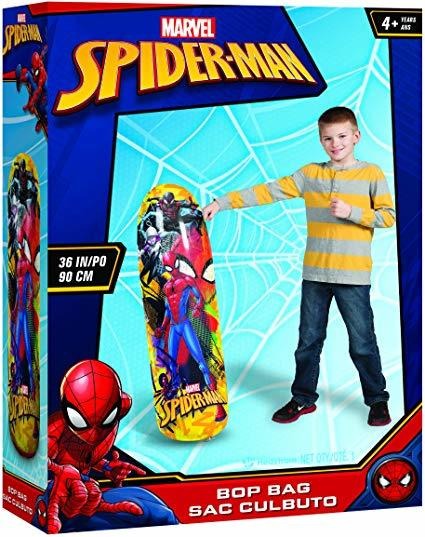 Incluye una bolsa de 36” BOP inflable con Spider-Man gráficos; Desinfla para el almacenaje fácil; Diseñado para ser un juguete divertido y eficaz ejercicio para los niños. Aumenta la coordinación; Añadir agua o arena a la base para la acción rápido retorno; agua y la arena no están incluidos; Seguros para el uso interior y exterior Esta bolsa de Spider-Man Bop es más divertido que una pelea de almohadas con su diseño lleno de acción. Cuenta con los personajes favoritos de la exitosa películas de Spider-Man y tiene una base de agua con peso o con relleno de arena para la acción de recuperación elástica fascinante que ofrece horas de entretenimiento. La bolsa BOP Hedstrom está hecho de super vinilo de alta resistencia para una mayor durabilidad resistente que le permita resistir el uso diario. Se desinflará para un fácil almacenamiento cuando no esté en uso, también. Este accesorio de la diversión está diseñado para niños mayores de 4 para jugar y tiene que inflar a su máxima capacidad para la función apropiada. La bolsa de Bop 36″ ayudará a los niños a construir habilidades de coordinación, mientras que el fomento de la actividad física. Una gran manera de quemar algo de ese exceso de energía. Todos nuestros productos estan en inglés SKU 5121935312