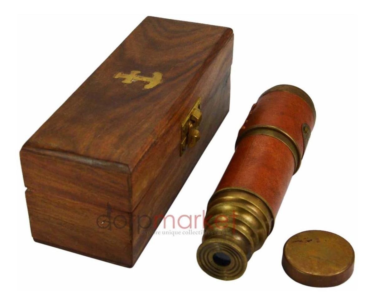 Especificaciones: Hermosa Rosa Piel Encased Telescopio De Latón Con Caja De Ma